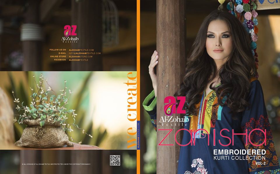 Zanisha is a sub-brand associated with Al Zohaib textile specifically dedicated to introduce kurti assortment every season. Al Zohaib Textile itself is Pakistan’s leading clothing brand established in 2011 bringing up a new flavor and revolution in clothing trends. It has been featured with additional labels including Mehdi, Ayesha Zara, ZebAisha, Mahnoor, Karma, Tabasum Mughal, Anum Lawn, Anum Chiffon, Monsoon Lawn, Zanisha, Rizwan Beyg and Mahiymaan Signature Series. Let’s enjoy the sizzling prints introduced this year.