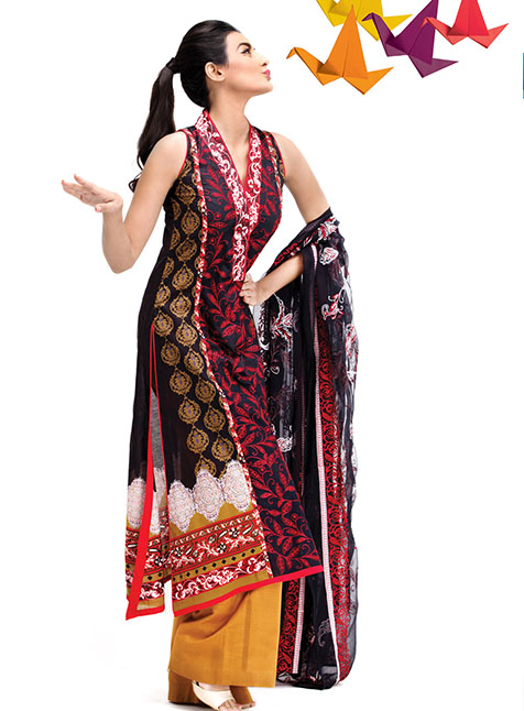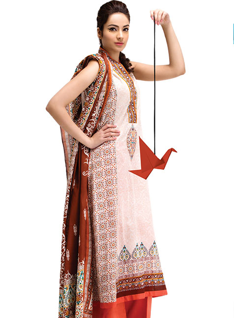 This year just as they promise, they have introduced a wide range of fabrics with amazing designs and hues. Ranging from shirt pieces, simple unstitched full (3 piece) suits to stitched items, as well as embroidered three piece suits. Following is a little demo of the 2014 collection containing the dominating designs of the stock. Keep in touch with stylesglamour.com to see their price details.