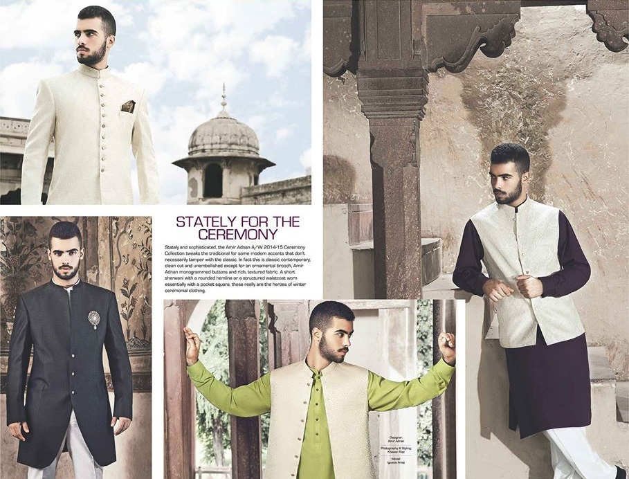 Amir Adnan, a business graduate stepped into fashion industry with his label in 1990 revolutionizing the mind sets of modern generation and giving them awareness about how to dress in a perfect way. The brand deals in men’s casual wear and corporate matching the international standards. It is most famous for couture and wedding sherwanis. Now that the season is at it’s peak, you must be looking for some casual wear outfits for daily routine and of course a few party wear or functional dresses too, as the wedding season is on. This fantastic array of dresses will help you find the stuff of your choice.