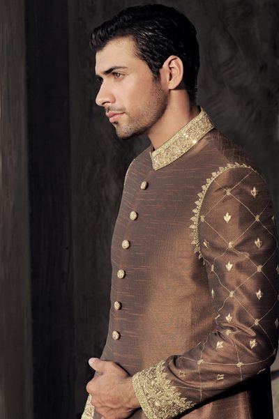 If you are checking out latest wedding dresses for grooms you must be searching out sherwani collections. Here comes one of the best collections of latest and stylish Sherwani styles according to the trends by Amir Adnan. It is Pakistan’s first International menswear label which was established in 1920 and since then it has been among top most menswear brands round the country. It’s outfits are liked equally in Middle East. This brand is owned by a popular fashion designer Amir Adnan who has been a very talented man. The brand is although best known for menswear, yet deals in women’s clothing too. It’s collections introduced every year are unique and versatile with a little western touch in some collection lines. The trend of sherwani is still very common in Pakistan, especially on events like weddings, this dress is preferred for grooms. Others also like to wear the ones with little embroidered work.
