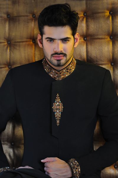 The latest Sherwani Collection 2014 by Amir Adnaan is an adorable assortment full of trendy and stylish designs. It contains a wide range of Sherwani styles in elegant colors. The stuff used is appropriate to wear on weddings, parties and other events where you may be supposed to wear a dress for a longer duration. The royal silk fabric embellished with thread and stone work, motifs, broaches and beads along with light embroidery on collars and cuffs are adding glamour to grace of these outfits making them perfect to be worn on one’s wedding day. You may choose this brand as one of the best fashion hub for wedding dresses. Check out this fine collection in a photo shoot below. In order to purchase these items refer to Amir Adnan’s official website to shop online from E Store or visit it’s outlet in your city.