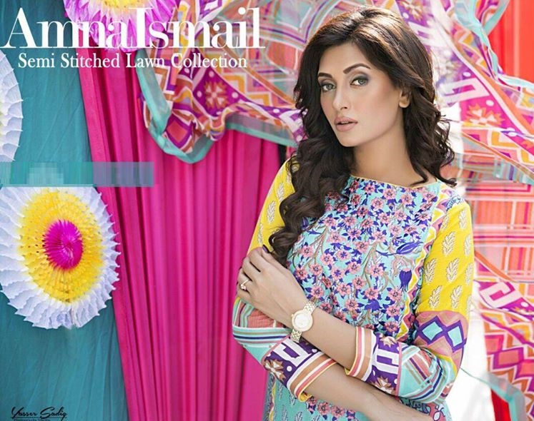Amna Ismail is a popular Pakistani fashion brand coming into fashion market a few years back. It is a fashion house being owned by Amna Ismail, Pakistan’s leading fashion designer. She has a good command on designing stitched and semi stitched lawn suits with brilliant designs for women. Her designs are always impressive and worth appreciating which are being loved by public in all over Pakistan. For the ladies who wish to wear wonderfully embellished embroidered and digital printed lawn suits, this clothing hub has proved to be the best provider of stylish semi stitched suits. Let’s see what she has brought to you this year in her Summer Collection.