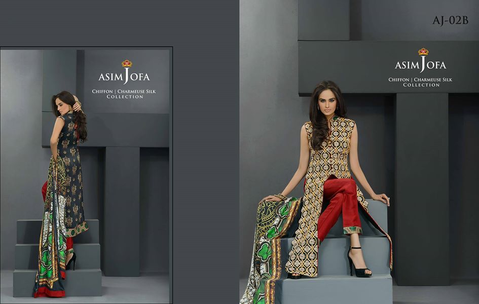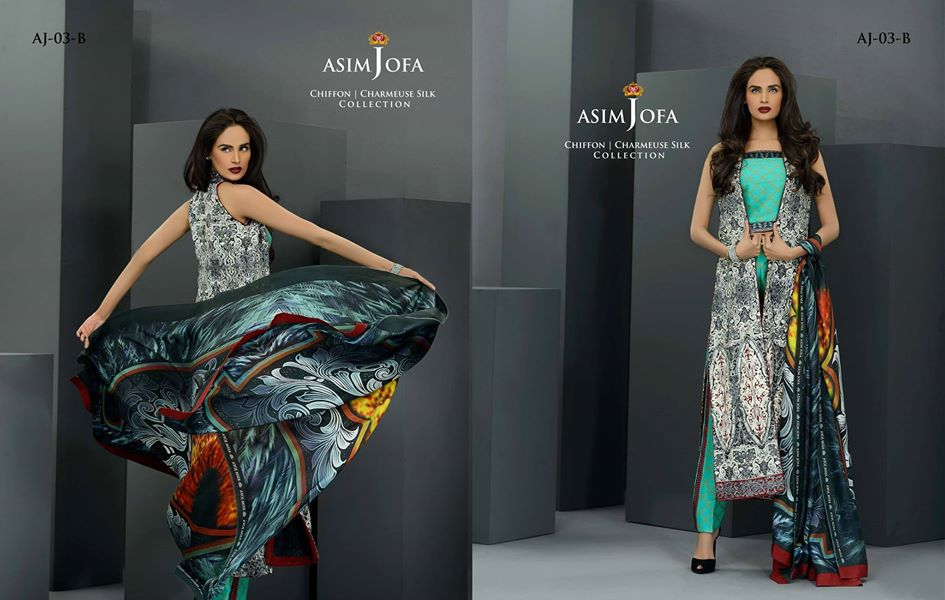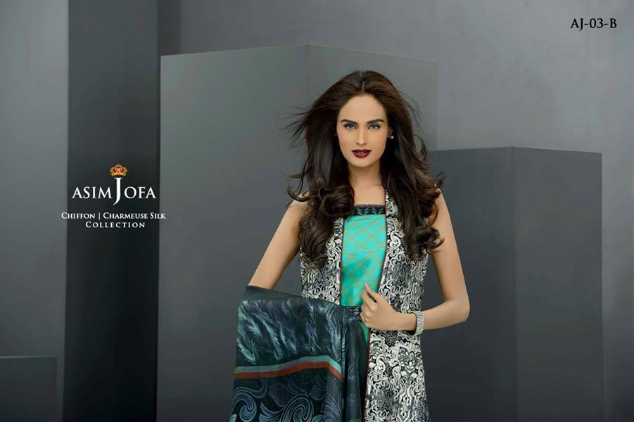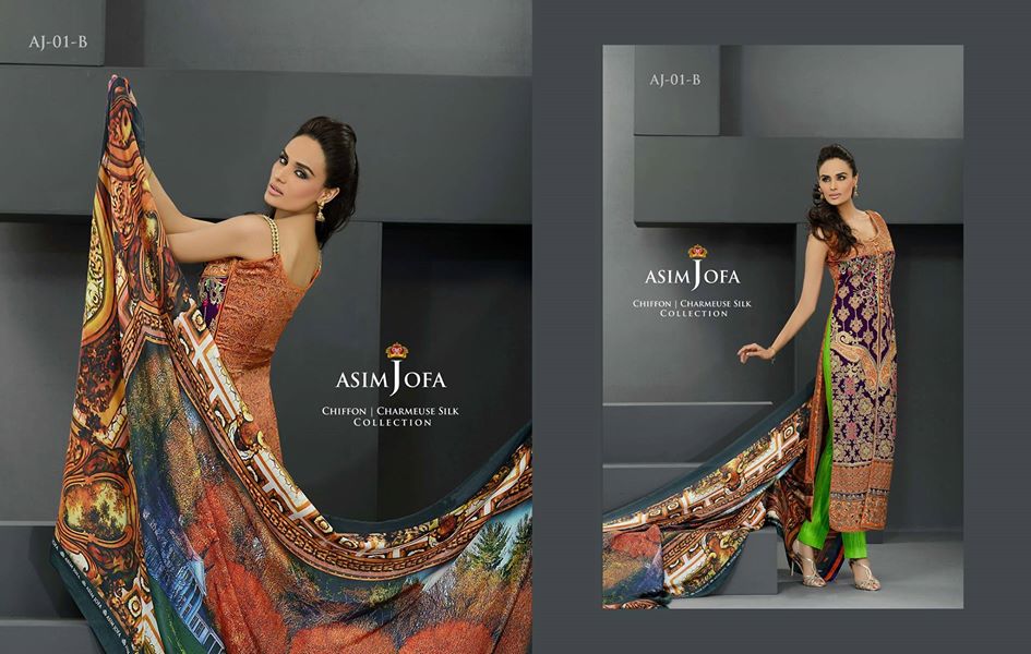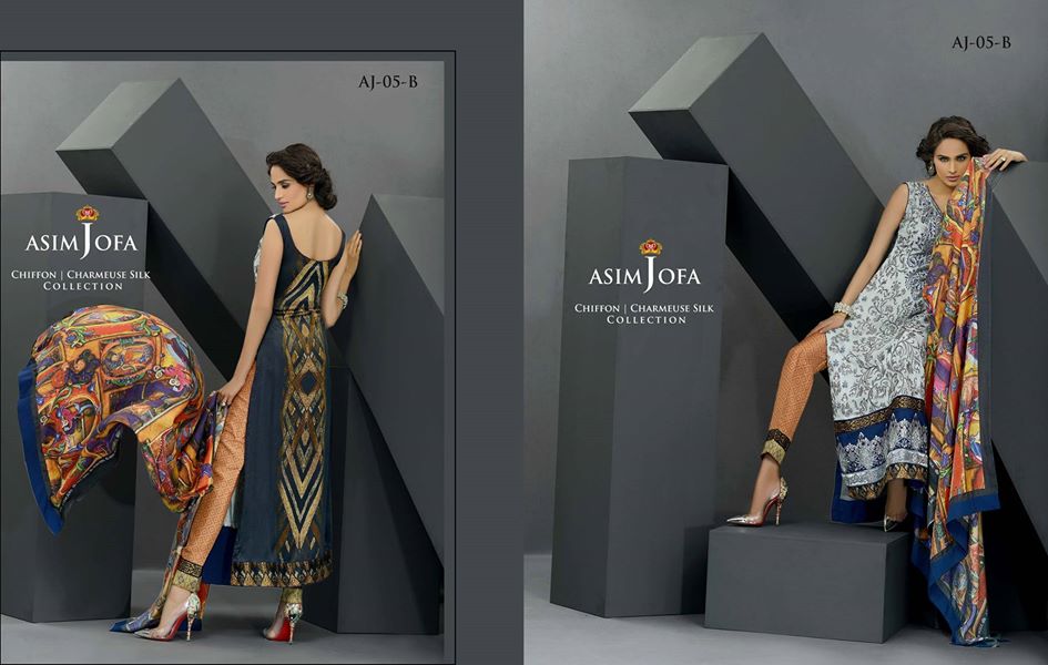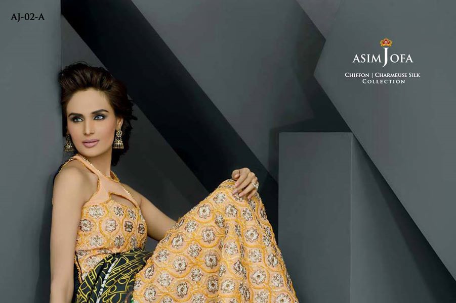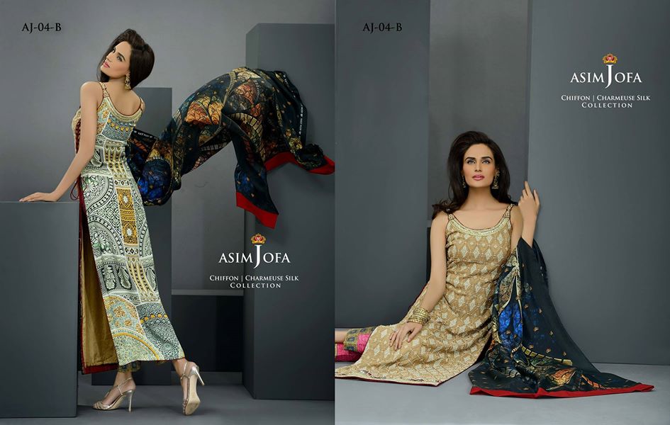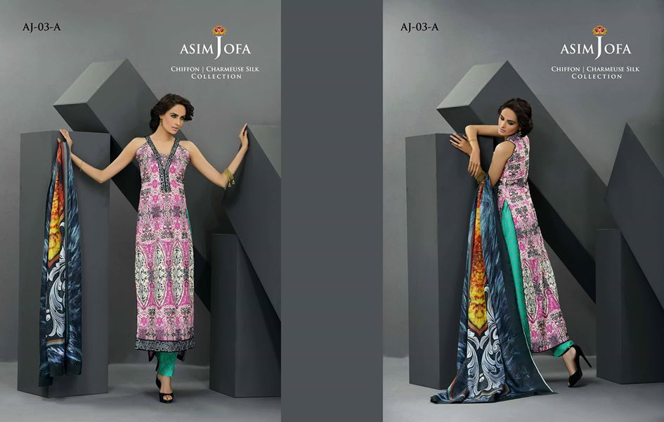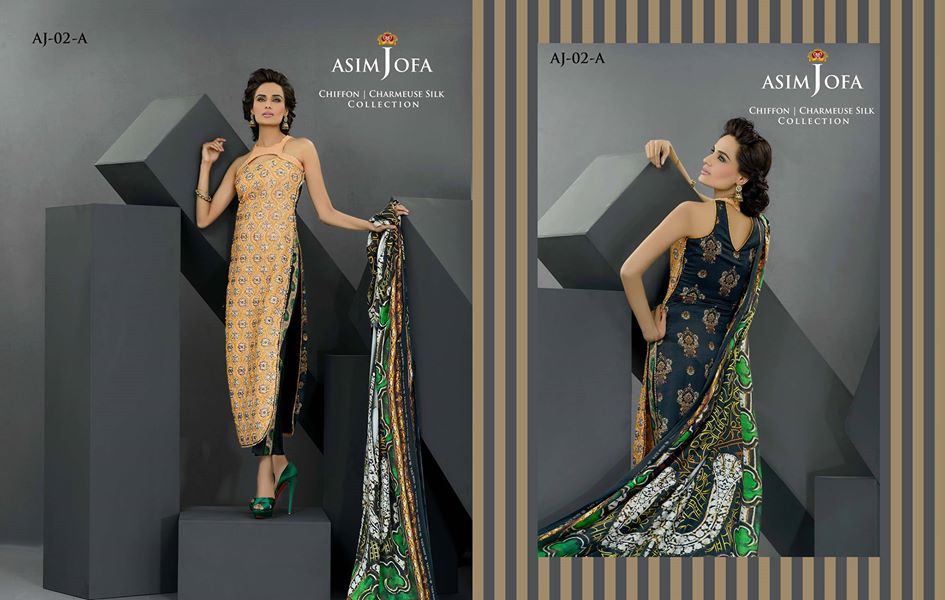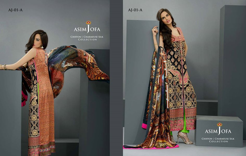 So, ladies! The wait is just over now and Asim Jofa Charmeuse Silk Eid collection is finally going to hit the stores. This has been one of the most awaited collections of the season. As the great festival of Eid Al-Fitr is on its way, women were anxiously waiting for the stunning assortment to be unveiled. Asim Jofa has always being very much popular among ladies who love to wear trendy wearable. This designer has always been the first priority of a modern woman. He designs extremely classic and chic designs that are wonderful enough to be grabbed on first sight. The luxury lawn collection launched this year by AJ was a great success and now the charmeuse Silk collection is going to be released as festival special assortment. Although the trend of wearing silk or chiffon dresses on Eid day has almost vanished because of a big change in weather conditions since past few years, yet this collection is again going to be a trendsetter. Women prefer wearing lawn suits with a little embroidery to stay comfortable, but still there are many who believe that there must be a little traditional or formal touch in festival outfits. Keeping into view this valid point of customers, AJ has smartly designed the festival special dresses in a different stuff, the charmeuse Silk. This stuff is extremely soft and comfortable to wear and the best thing about this fabric is that it throws a good fall in stitched outfits; whatever style of dress is being stitched.