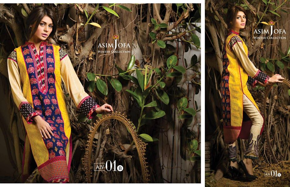 Asim Jofa Winter-Fall 2014-2015 Collection for women has been released with it’s charm and charisma spreading all around. This new assortment is giving you an opportunity to wear most appealing and luxurious fall prints this season. These dresses are formatted as 2 meters shirt fabric, 1 meter embroidered fabric, 1 meter printed fabric for sleeves and 2.5 meters printed fabric for trousers or shalwar. These suits have been embellished with very elegant and graceful prints and embroidered work in very impressive eye popping colors. Posted bellow is a photo gallery where all these new and fresh winter arrivals have been displayed. Have a look at these and opt for the most inspiring ones. Be the first one to grab these articles before they run out of stock and you just miss the chance of having these royal wearables. Feel free to share your views about these in the comment box below. Your feedback is highly appreciated as it helps us bring you the stuff of your choice. Keep visiting Stylesglamour Winter fashion area for more.