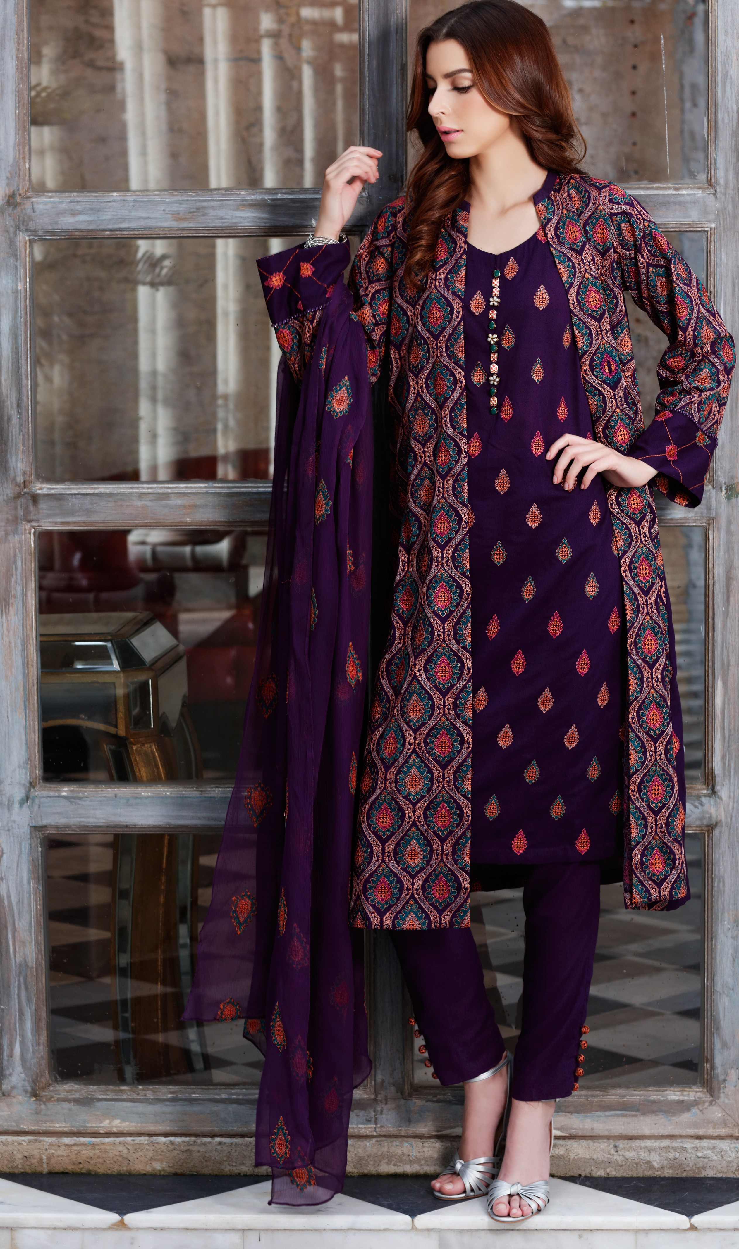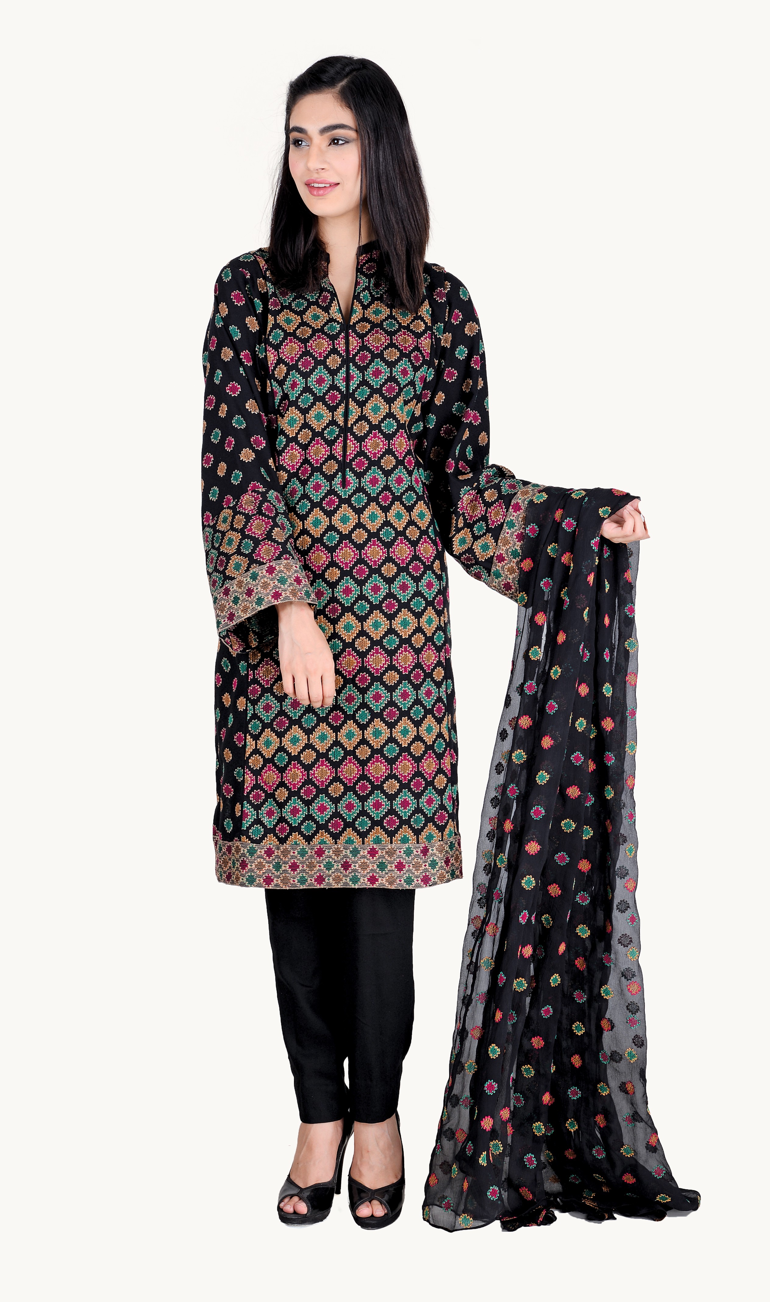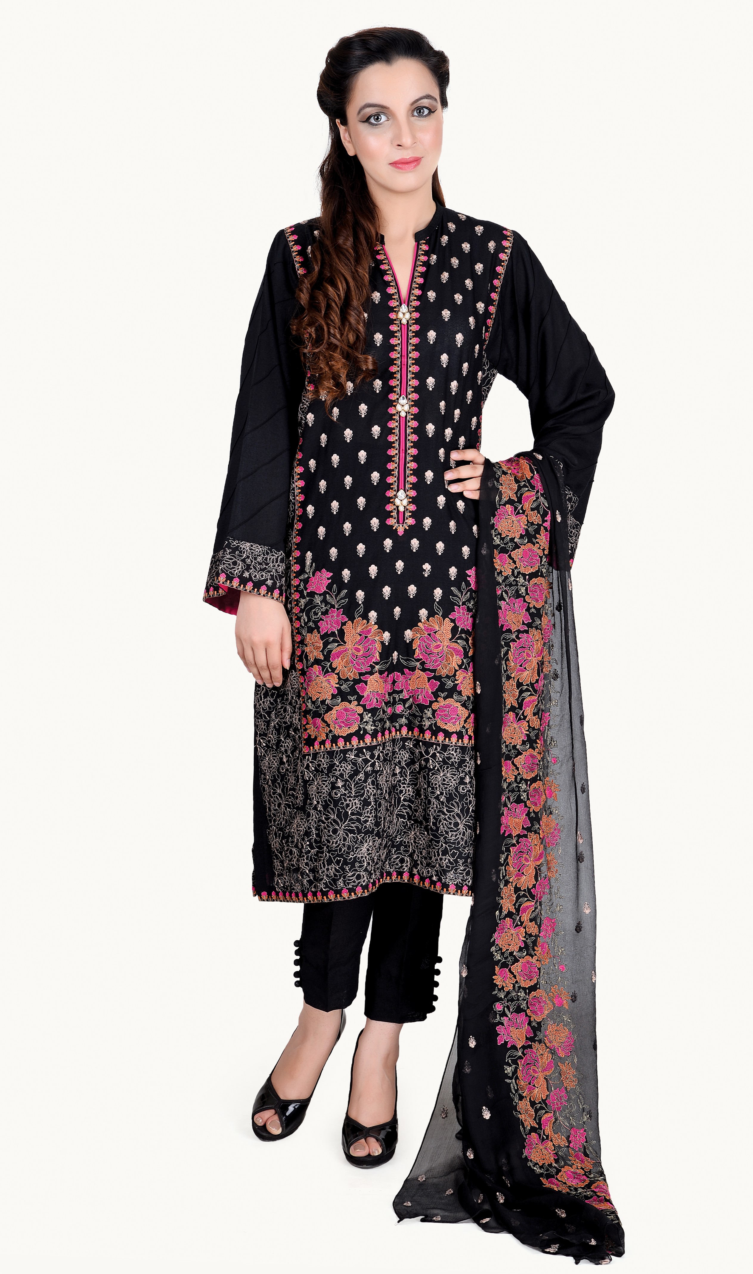 Barezee Winter Collection 2015-2016 has now been launched nationwide with its marvelous and impressive designs grabbing attention. These dresses have been formatted as three piece full suits embellished with embroidered patterns and designs. You may go for these dresses if you don’t want to compromise on quality. Let’s help you shine this winter by wearing Bareeze embroidered classics.