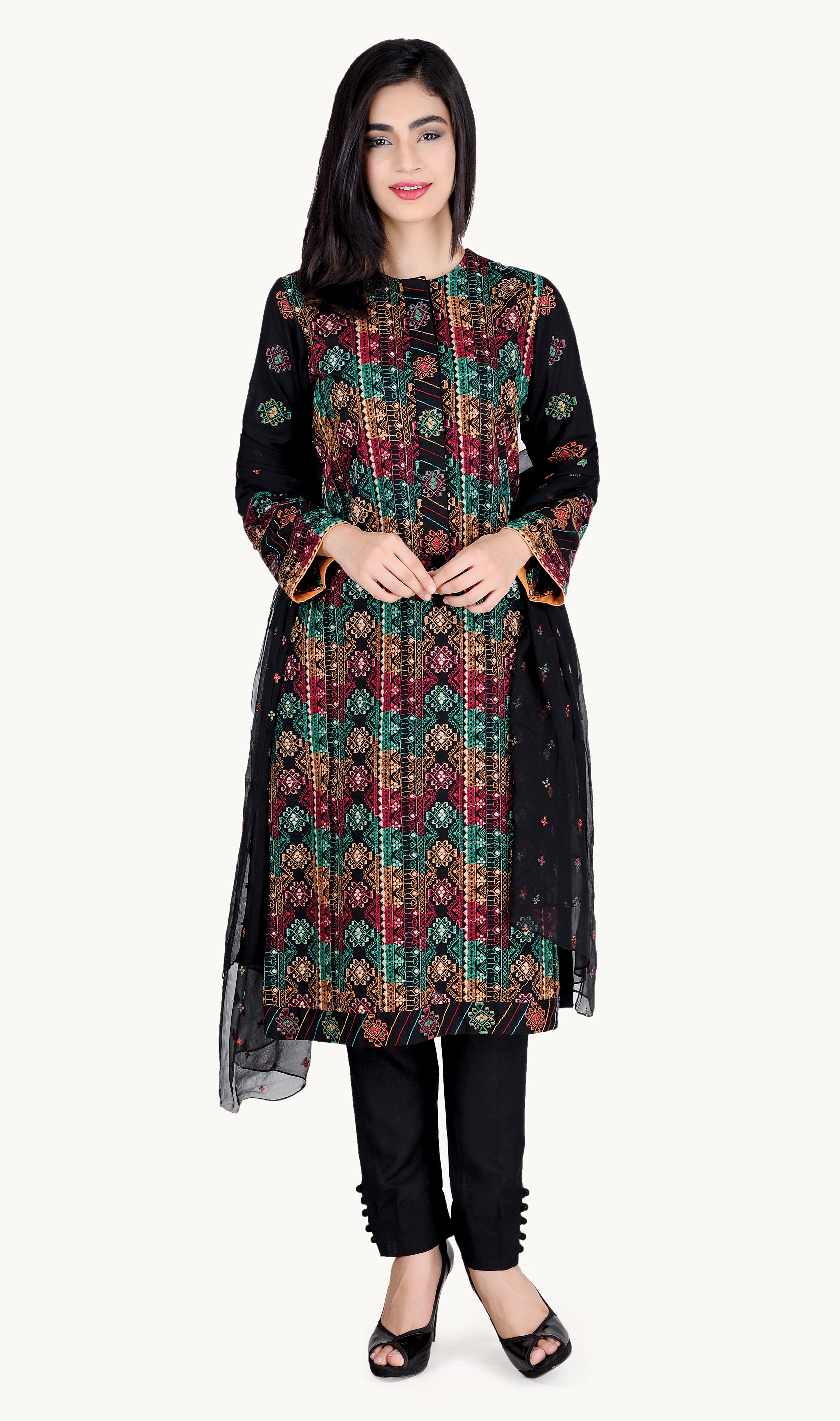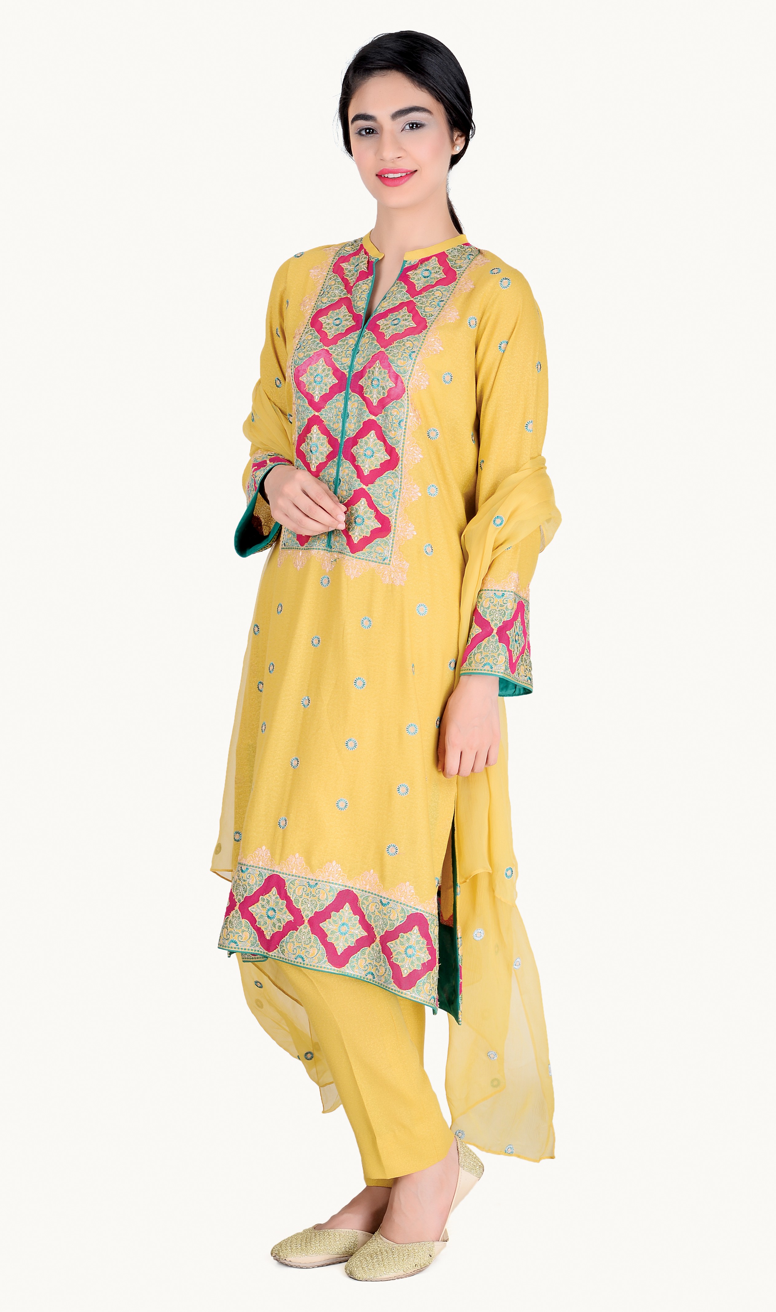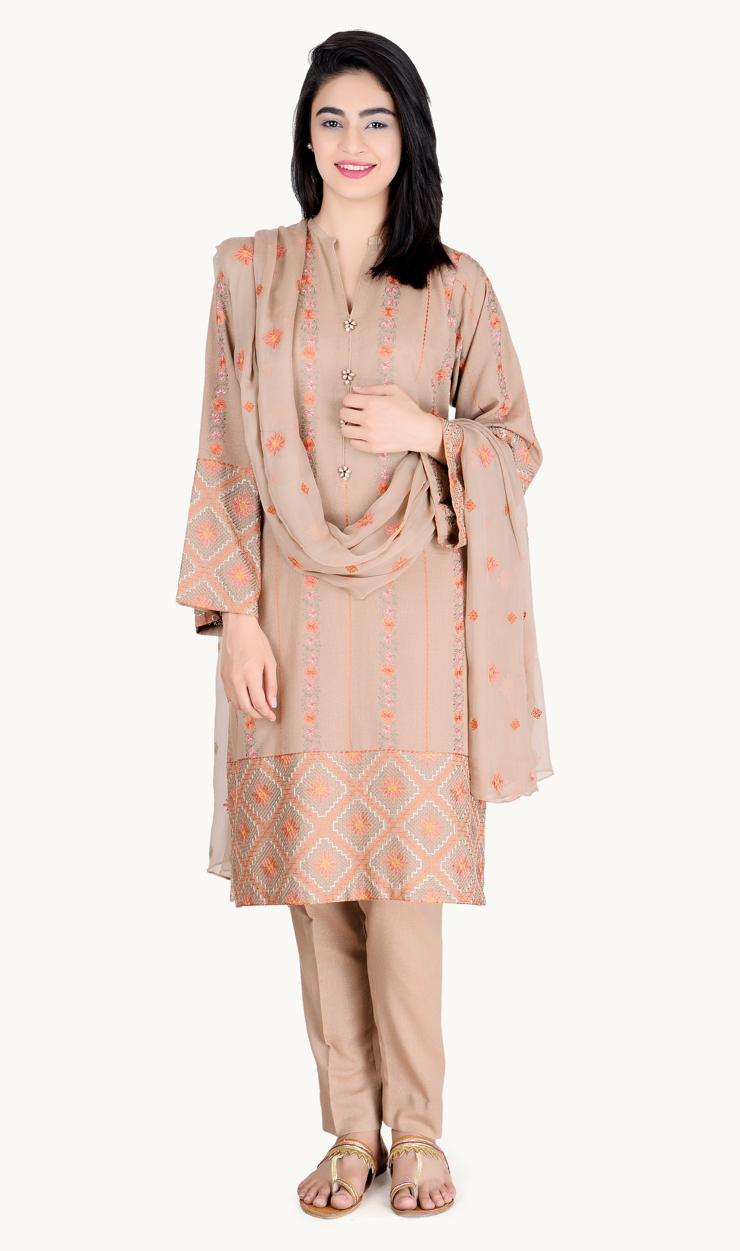Barezee Winter Collection 2015-2016 has now been launched nationwide with its marvelous and impressive designs grabbing attention. These dresses have been formatted as three piece full suits embellished with embroidered patterns and designs. You may go for these dresses if you don’t want to compromise on quality. Let’s help you shine this winter by wearing Bareeze embroidered classics.