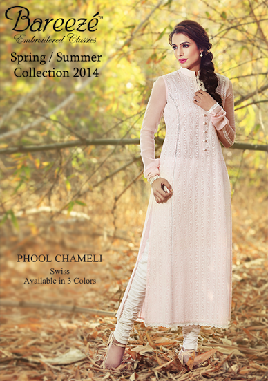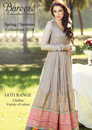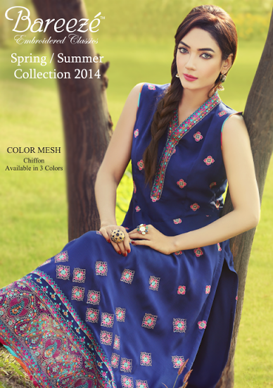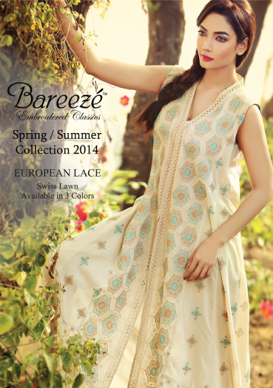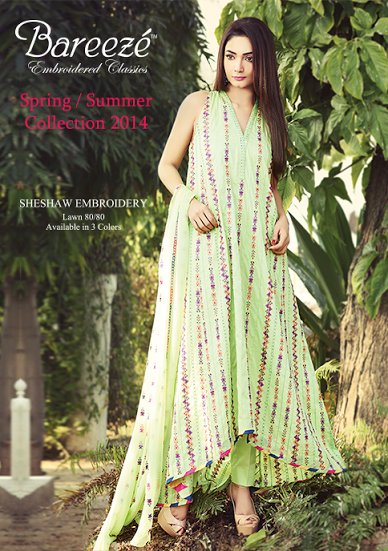The Bareeze Summer 2014 collection is hitting the stores now. You may be looking for this new arrival online. We have covered up the complete collection in this article. Bareeze is a very popular clothing brand serving since past 30 years. It deals specifically in women’s clothing. You can find diversity and quality in their fabrics. Their collection lines cover Chic Chiffon, Crisp Cotton, organza, silk, and marvelous lawn prints. Their embroidered classics are prefered nationwide and have always been proved to be very demanding and appealing. As far as the lawn suits are concerned, this clothing hub has always introduced unique and magical designs every year.