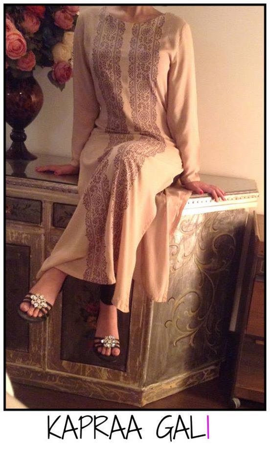 The craze of buying new dresses is now-a-days on it’s peak as the grand religious festival of Eid Al-Azha is right on it’s way. A very few days are left, so hurry up! rush to the market for having some brand new dresses for the festival. But wait, what if you don’t find exactly what you want in this limited time duration? How about checking out latest designer and branded festive collections here, select your favourite designs and buy them later by visiting market or by shopping online. This is the best option for those having busy schedules. We will be providing all latest Festive collections at this platform for your ease of selection. The collection that is just coming your way right now has been launched by Kapraa Gali. You might not be very familiar with this clothing label, yet it has proved itself in a very short span of time by introducing outclass women dresses designed with much care and devotion. This clothing line is being owned by a young designer named Anum Jung, who has been fond of designing since very young and tender age, initially designing only for her family and friends and latter exposed her talent publicly by starting her own clothing brand in 2012. Her designed outfits are greatly appreciated and demanded by public.
