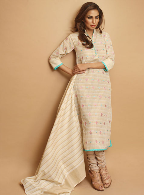 The summer season has prolonged unexpectedly leading to the arrival of even the Eid Al-Azha in a hot weather. Years before when the festival used to arrive in winters or spring, silk and chiffon suits were commonly worn as festive dresses but now the weather doesn’t allow wearing such a thick stuff. These weather conditions have forced designers and brands to design festive dresses in lawn or cotton stuff now. Further the number of collections released has also risen as many of the brands have also launched their mid-summer collections before pre-fall and fall collections. A similar collection has been launched by AlKaram a few days back.