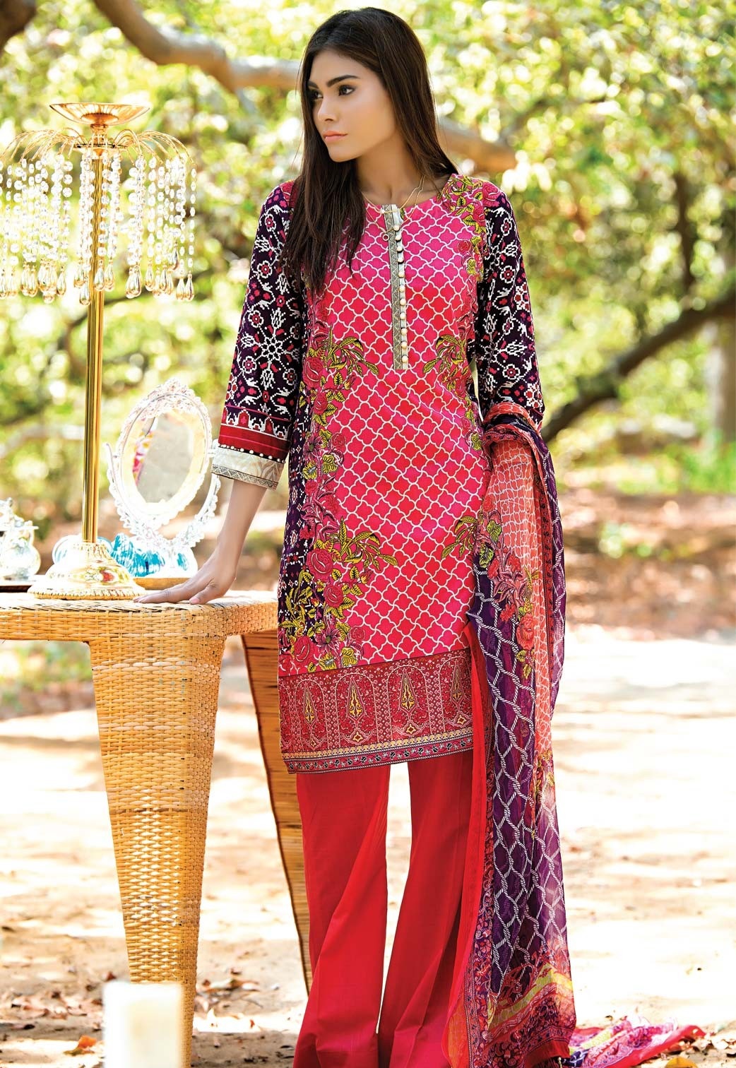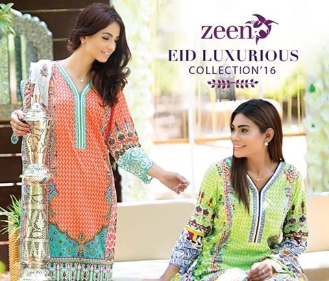 Zeen Luxurious Eid Collection 2016-2017 is a splendid assortment of a variety of dresses, jewels, and clutches for women. It contains three piece unstitched asuits with pretty floral patterns and attractive lawn prints. These dresses in fantastic and vibrant colors are enriched with festivity and glamour. Delicate embroideries on front panels and necklines are making them perfect to be worn on the great festival. You must select at least one of your festival outfits from this spectacular assortment if you really want to look unique and stylish on this Eid. Or you may pick up some matching accessories with your outfits. So are you ready to wear a perfect attire this Eid and steel all the compliments from your friends and fellows? This wonderful collection will surely help you find some cool and classy unstitched fabrics, so you may buy these and get them stitched just as you want. Have you explored the assortment? If not then we have brought it right here for you ladies.