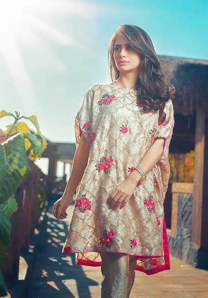 Capes look quite elegant and graceful and are a preferred choice of those ladies who love to stay covered with modest clothes especially on parties and weddings. Stunning designs of heavily and light embroidered short, medium length and long capes in chiffon, net, tissue and organza stuff are covered up in this section so you may pick up any style according to the function that you are just going to attend. Cape Style dresses can be paired up with any bottom style like short Capri pants, trousers or palazzo pants, but the recent trend is to pair them with bell bottom trousers.