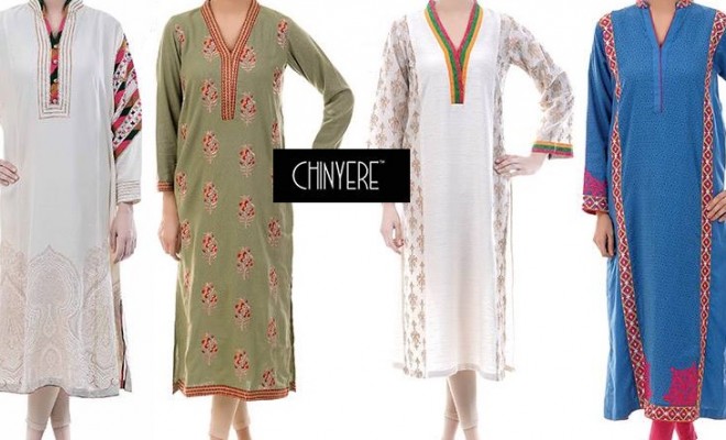 Chinyere winter 2014-2015 Collection is finally available in stores. The collection has un-wrapped a pretty range of ready-made garments for women. These beautiful winter suits are embellished with neat and elegant embroidered patterns and graceful prints and designs in eye catching colors. These ready-to-wear stylish dresses are being stitched in perfect styles and are appropriate to be worn in casual routine. Long shirts, kurtas and frocks along with tights, trousers and shalwars are stylized with trendy embellishments. You may find all these new arrivals in the following photo session that displays all these items in an HD view. Keep scrolling down the screen and have a look at these classy wearables by Chinyere. In order to purchase these dresses, you may refer to the Chinyere official E store or visit Chinyere nearest outlet in your city. Stay tuned with Stylesglamour Clothing gallery for more fresh arrivals and fashion updates.