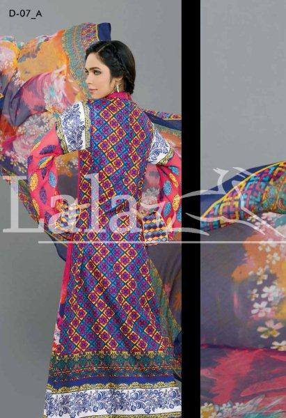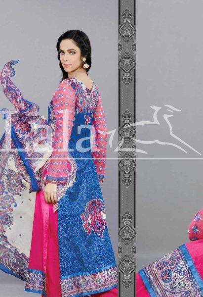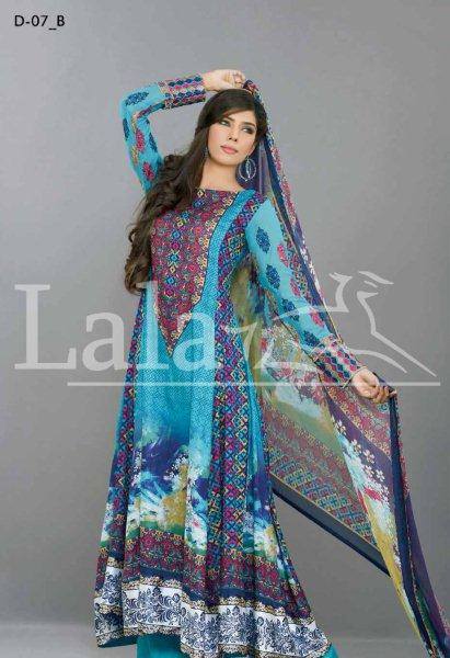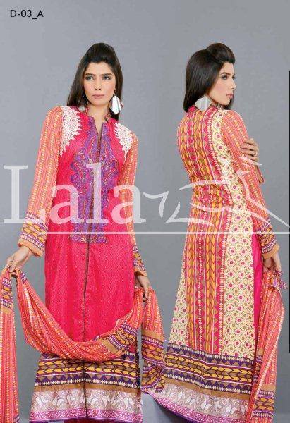 Wonderful Summer Lawn dresses collection by Afreen has been launched. Afreen is one of the many labels by the famous clothing brand Lala. The others being Saima, Sana, and Kesa which have also been very consistent among providing best lawn dresses for women since past few years. Lala is Pakistan’s new, yet a famous clothing hub which deals specially in women’s clothing. It is dedicated towards introduction of quality fabrics for women every year. Lala had also launched another amazing Lawn collection earlier under the name “Dahila Lawn 2014”. It was among the most demanding collections of the year. After it’s successful launch, this new collection has been released now. As seen, markets get overcrowded by the start of Summer season, which shows keen interest of people in shopping summer clothes. This might be one of the many reasons why designers and clothing brands have diverted their attention towards Lawn Collections. Now that the Summer is on it’s peak, its high time for you to pick up some pretty summer outfits to updates your summer wardrobe. You may get confused while you go outside for shopping because of an increased number of brands and dress designers. The process of selection becomes more and more tough when you are to choose among so many options. So, in such circumstances you may need a guide to help you out in selecting a perfect brand and hence the selection of perfect dresses. We are here to serve you in such cases. By the arrival of summers, all designers and brands have released their seasonal collections. We have covered many of them. We try to pick out the ones which are ranked as top most brands and bring the collections for you on this platform to help you decide in a better way. Further, you may not manage enough time to visit the market to go through each and every design offered by the company. So we list up all the designs here for your ease of selection. Following is latest Lawn collection of women dresses by Afreen.