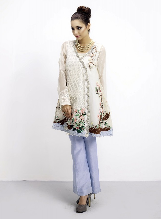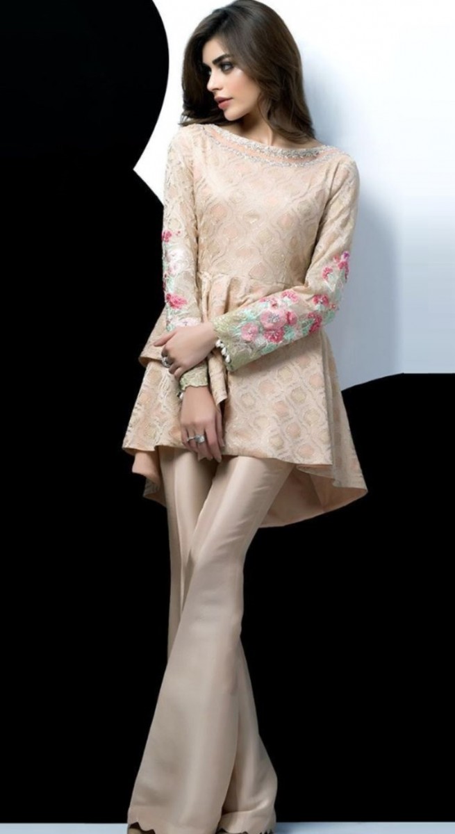 Peplum Frocks 2017 Designs from the popular designer collections of the season are displayed right below. Starting from the casual short frocks to formal and fancy peplums paired with sharara pants, bell bottoms, tulip pants, pencil pants, trousers and straight pants, the collection covers a huge variety of designs and styles which are in trend these days.