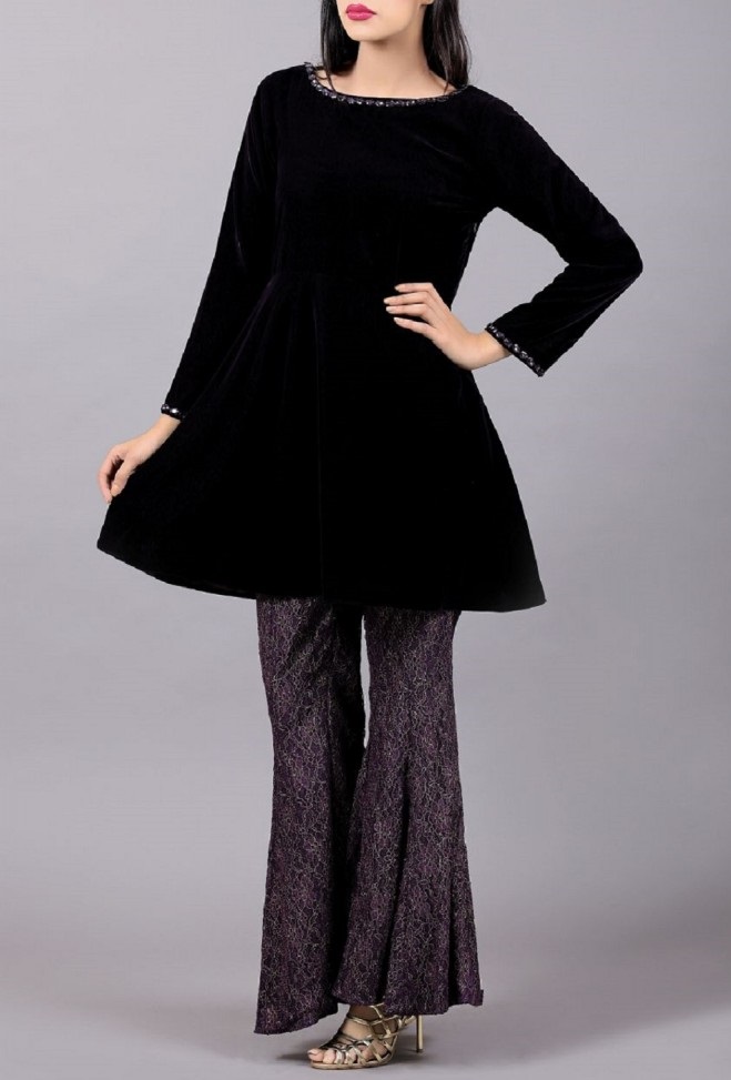 Bells to a peplum frock are like the perfect match; both have the seemingly sharp curves and spreads into a bell to a beautiful fall and flares. In this particular style peplum frocks are either printed or embroidered while trousers are plain and simple. Sometimes designers prefer to create a contrast of dazzling hues. Whereas love for soft shades is still in the air. Wherever you will see models adorned in pretty peplum frock with bell bottoms, you will find those all designed in silk as the fabric has more weight in it. Whereas the frocks are the mix of chiffon, net, cotton or even Georgette sometimes. As appealing the contrast may look, but the monochromatic hues are more common in this particular style. Bell Bottoms are quite in trend these days and give an extremely gorgeous and magical look to the tops paired with them.