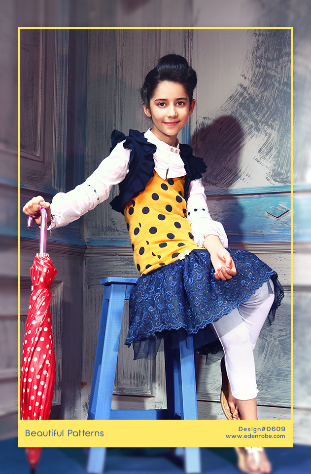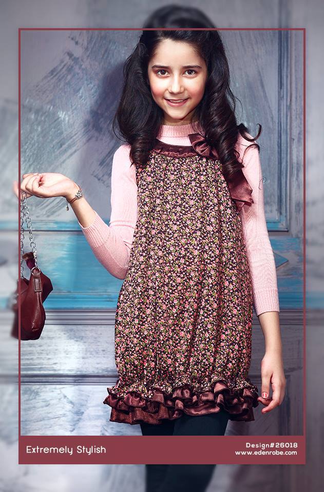 There is no doubt that dressing according to new styles has always been one of the most interesting and favourite tasks of ladies. Yet there is something else in this regard that makes them much more conscious and sometimes worried. Guess what? Of course their kids’ clothing. A mom finds her preparations all incomplete if her kid isn’t ready for a function, party or a get together. Once her child gets ready and dressed up properly she can carry on with her preparations peacefully and comfortably. For the moms who always keep on searching new and trendy styles of kidswear for their children, we have a surprising collection full of very beautiful and funky kidswear dresses that are so much pretty that their kids can look much more stylish by wearing them. This spectacular array has been brought to you this year by Eden Robe.