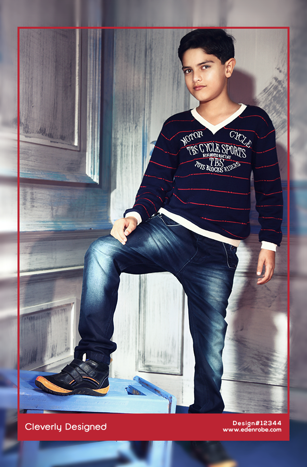 Eden Robe Kidswear Winter Fall Collection 2015-2016 has been launched with eye catching designs and styles of fall wear ready-made dresses for little boys and girls. The winter sale is just on and you have the right time to grab pretty wearables at control prices. This line has been featuring very elegant and impressive casual classics including casual T shirts, sweaters, and jeans pants for boys and frocks and tops being paired with tights and pants for girls. These wearables being manufactured with best quality fabric are perfect to be worn in the frosting season. The stuff wouldn’t only make your child feel comfortable but also keep him/her from cold. Make your child look like a prince or a princess by wearing a stunning outfit from this assortment which is offering you a bulk of style this year. See the entire assortment being displayed into the following photo gallery and place your orders now to have these pretty outfits for your children. Stay tuned with Stylesglamour Kidswear Dresses Gallery for more trendy dresses and accessories for your kids.