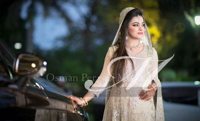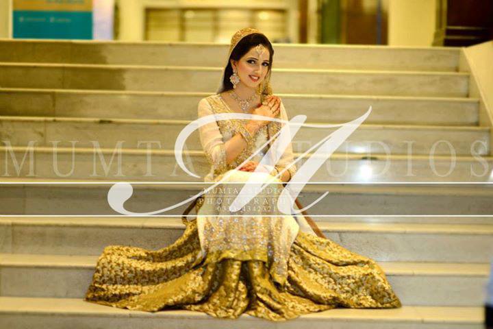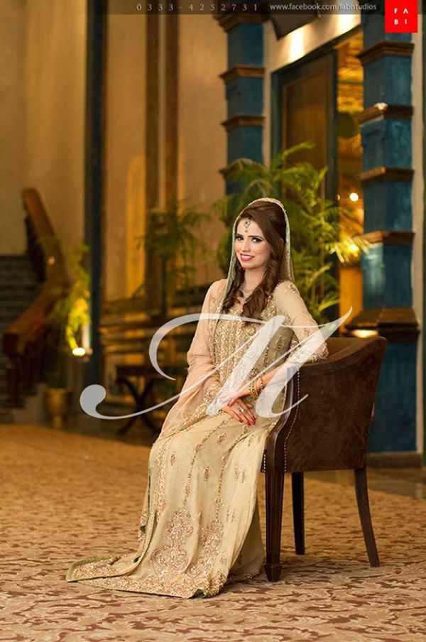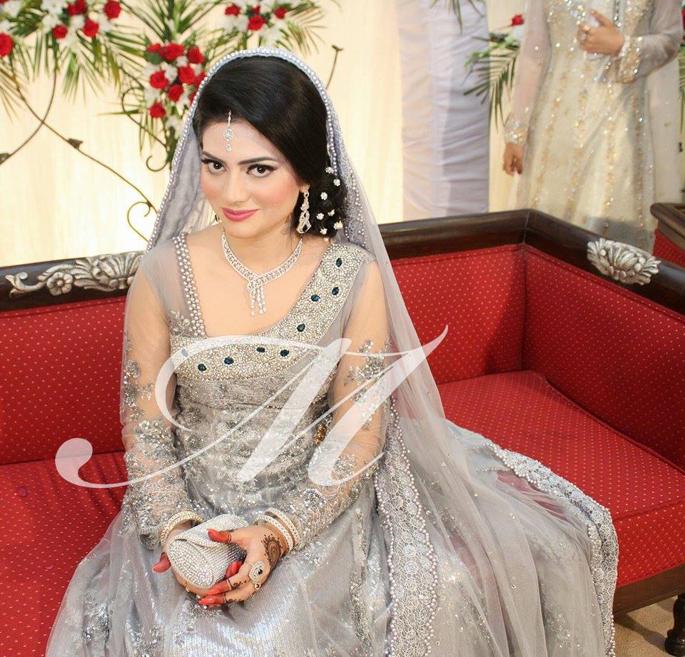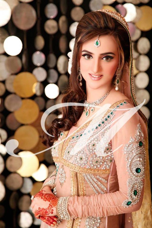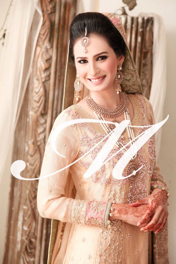 Generally light embroidered dresses with simple and elegant embroidered patches incorporated with thread work, tilla work, beads, motifs and broaches in above mentioned simple styles are worn on engagements ceremonies. Light colors with soft and smooth makeover go fine with such dresses. Smoky eye make-up is the best style that looks absolutely stunning with light colors yet it entirely depends upon one’s face’s shape, skin tone and dresses’ style. The collection that we have just covered up in this article also is comprising of latest make over ideas by Madiha’s Beauty Salon, one of the best names in industry. This will surely be going to help you out in designing a classic engagement dress for your big day.