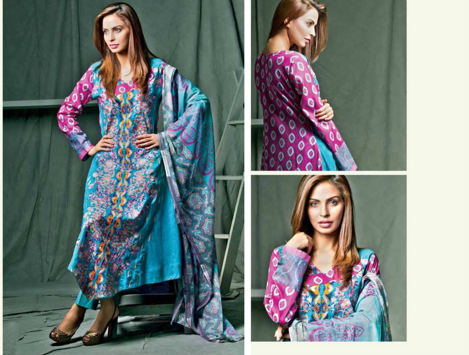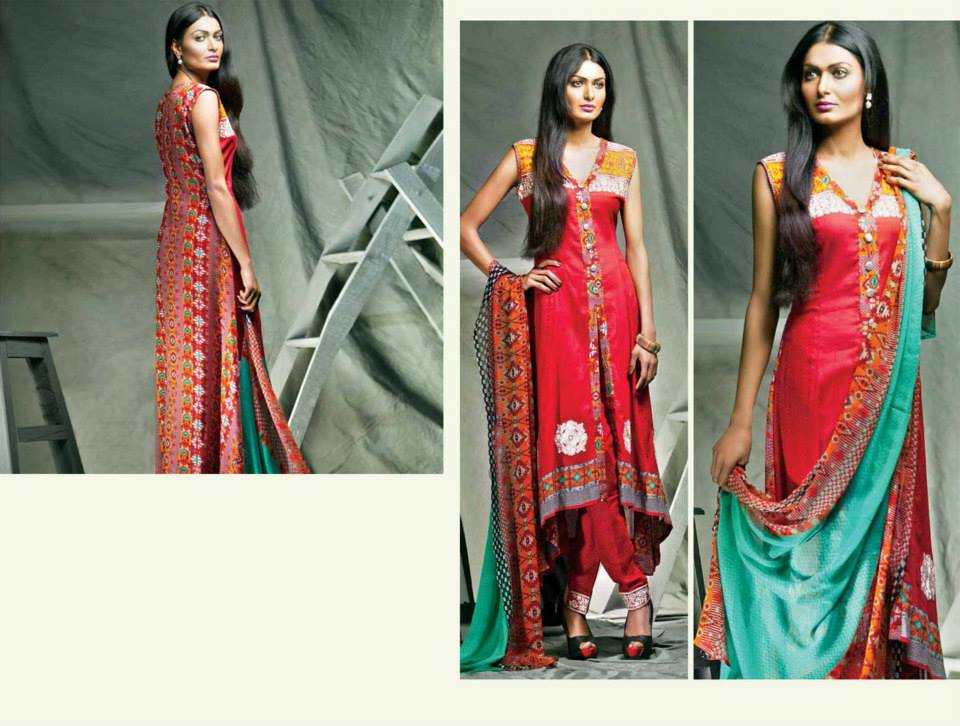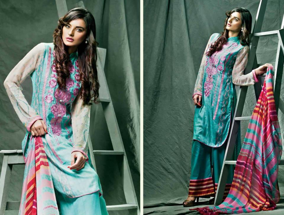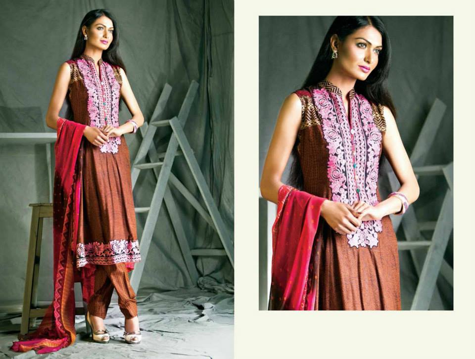 Feminine Embroidered Lawn 2014 Collection by Shariq Textile is as impressive as it’s name. It is adorned with adorable lawn dresses embellished with splendid embroidered work on front, necklines and sleeves. Embroidered patches are available with all suits. These dresses are available as three piece full suits with embroidered shirt piece, dyed salwar and chiffon dopatta, within a reasonable price range. The brand has chosen a wonderful scheme of colors in a wide range. Mixing up of various hues and contrasting shades are worth appreciating and demanding customer’s attention. The brillenet designs and sensational prints are adding a true glamour to these pretty wearables and making them perfectly suitable to be worn on events and ceremonies as simple semi-formal wears. It becomes extremely irritating to wear chiffon or silk fabrics on ceremonies in the Summers, so people generally like to wear embroidered lawn dresses in such circumstances. This collection is providing a room for selecting perfect outfits to be worn in Summers from a huge stock. It is helping you out smartly. If you find it difficult to find these designs in market, just check them out here and later ask for a dress by telling the relevant dress code to the official store. All designs and prints of this wonderful collection are being displayed in the photo session below. Have a look at all of them and choose the one that suits you the best. Be the first one to grab these sensational embroidered classics and rush to the nearest outlet in your city. You may shop them online from the company’s E store. Feel free to share your worthy views with us. Stay tuned with Stylesglamour for more trendy collections.