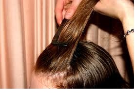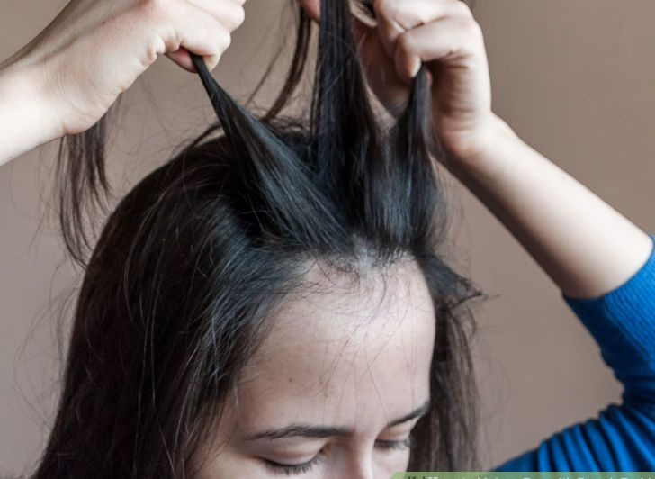 Put the central strand between your thumb and the fore finger of your left hand, and clump a section of your hair with the index finger of your left hand, which is now in the center of the head.