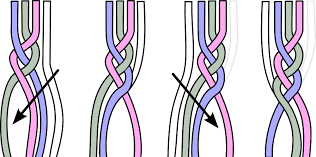 Put the right strand between index and middle finger of left hand, and the central strand between index finger and the thumb of your right hand.