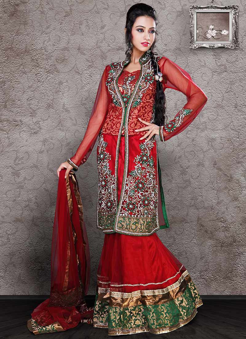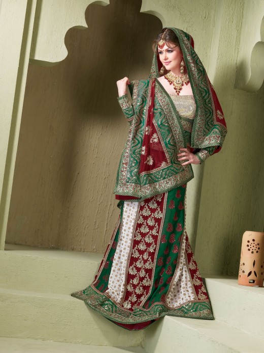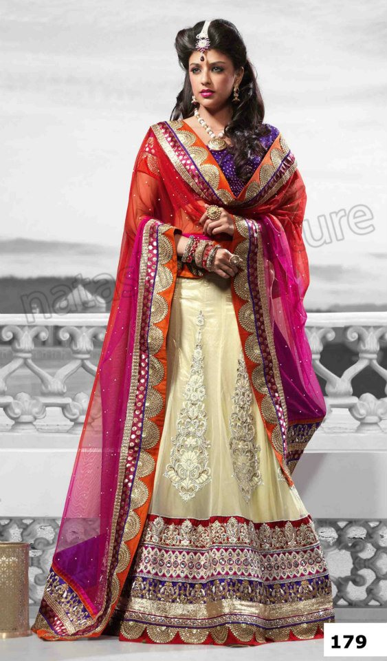 Lehenga Choli is a costume comprising of a long skirt type loose garment being paired up with a half or full blouse named choli as the upper garment. This dress is generally worn in India, Pakistan, Sri Lanka, Bangladesh, and Southern Nepal. Here in this session we are pleased to unbind beautiful designs and color combinations of bridal wear lehenga choli designs that can fit perfectly according to the latest wedding fashion trends. These stunning bridal wear are equally appropriate for Pakistani and as well as Indian brides. So the gorgeous ladies among you who are just the brides to be, this fantastic collection is going to prove itself the best ever collection full of most inspiring designs of trendy wedding wear suits.