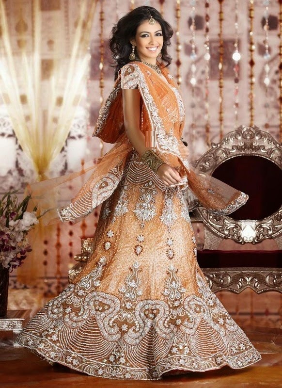 Bridal dresses is something that is facing high demand these days as the wedding season is right ahead and every weakened there is a wedding function. It has always been an utmost desire of a girl to look out of the world on her big day, for it is the only day when everybody focuses her and she is certainly the point of focus. So to help you guide in the best possible way in this regard is our first and foremost duty and we love to serve you by bringing best ever designs of clothing, footwear and other fashion accessories that play a vital role in grooming one’s personality. The ever increasing trend of wearing lehengas has now been covered up regions other than Pakistan also, including India, Bangladesh and the rest of the Middle East. Indian bridal lehenga choli is the hottest fashion trend these days in the Indian wedding culture.