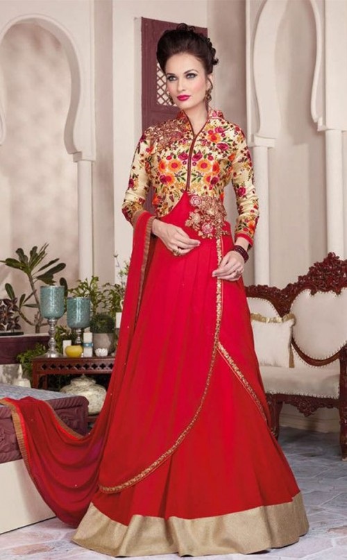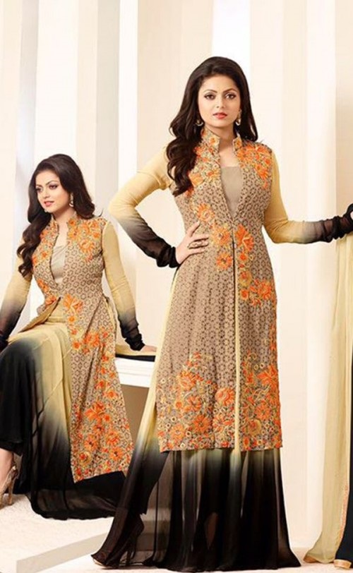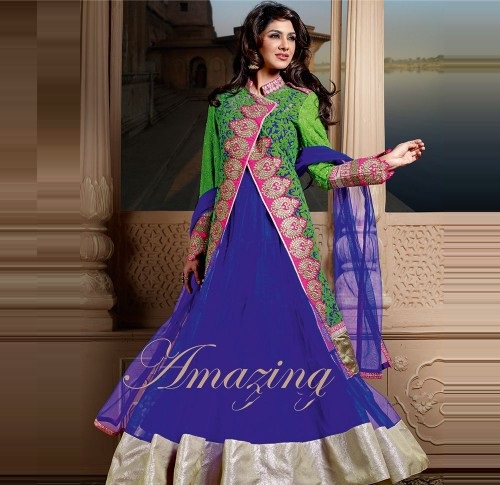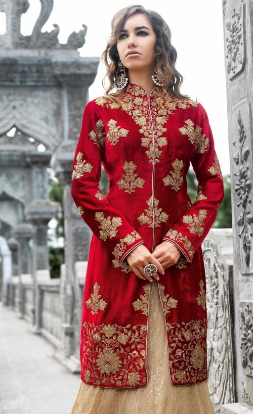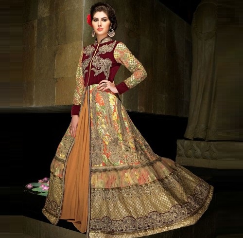 Jacket Style Frocks are the ones having a short, medium or long jacket as a top. These frocks are worn especially in India and Pakistan. The Pakistani and Indian designers thus bring various designs of jacket style suits and frocks in their collections especially the fancy formal collections. Embroidered fancy bridal frocks are also worn as bridal wear by brides on their wedding functions especially on the mehndi ceremonies. Girls also wear frocks as a major functional dress on functions and events. So let us bring you some very stylish and trendy designs of jacket style suits by India’s most popular online designer fashion portal, Ishimaya.