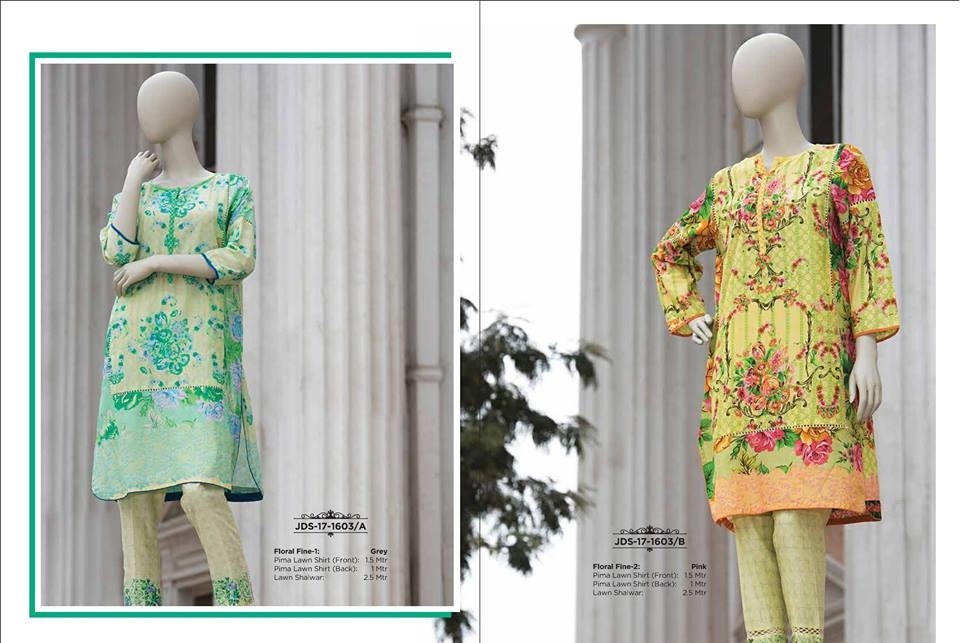 J. Double Delight features amazing designs of two piece lawn suits paired up with lawn and chiffon dupattas while some of the articles are available as shirt and salwar only. All these are available and stitched as well as unstitched suits.