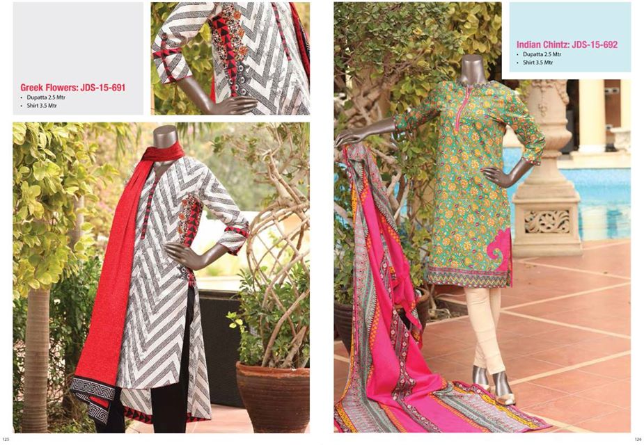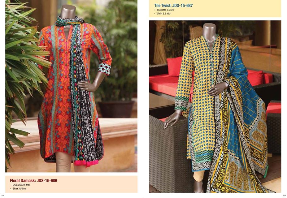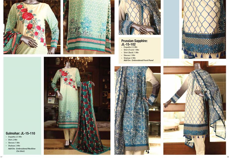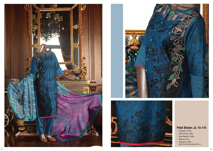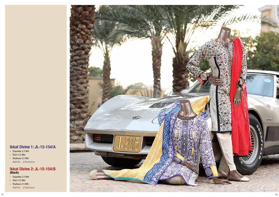 J. Junaid Jamshed Lawn Summer Collection 2015-2016 has recently been released and is now available at all leading stores nationwide. The collection as usual has been enriched with a versatile range of pretty lawn, silk and chiffon prints for the upcoming charming season that of course demand some classy, cool and smooth dresses to be worn.