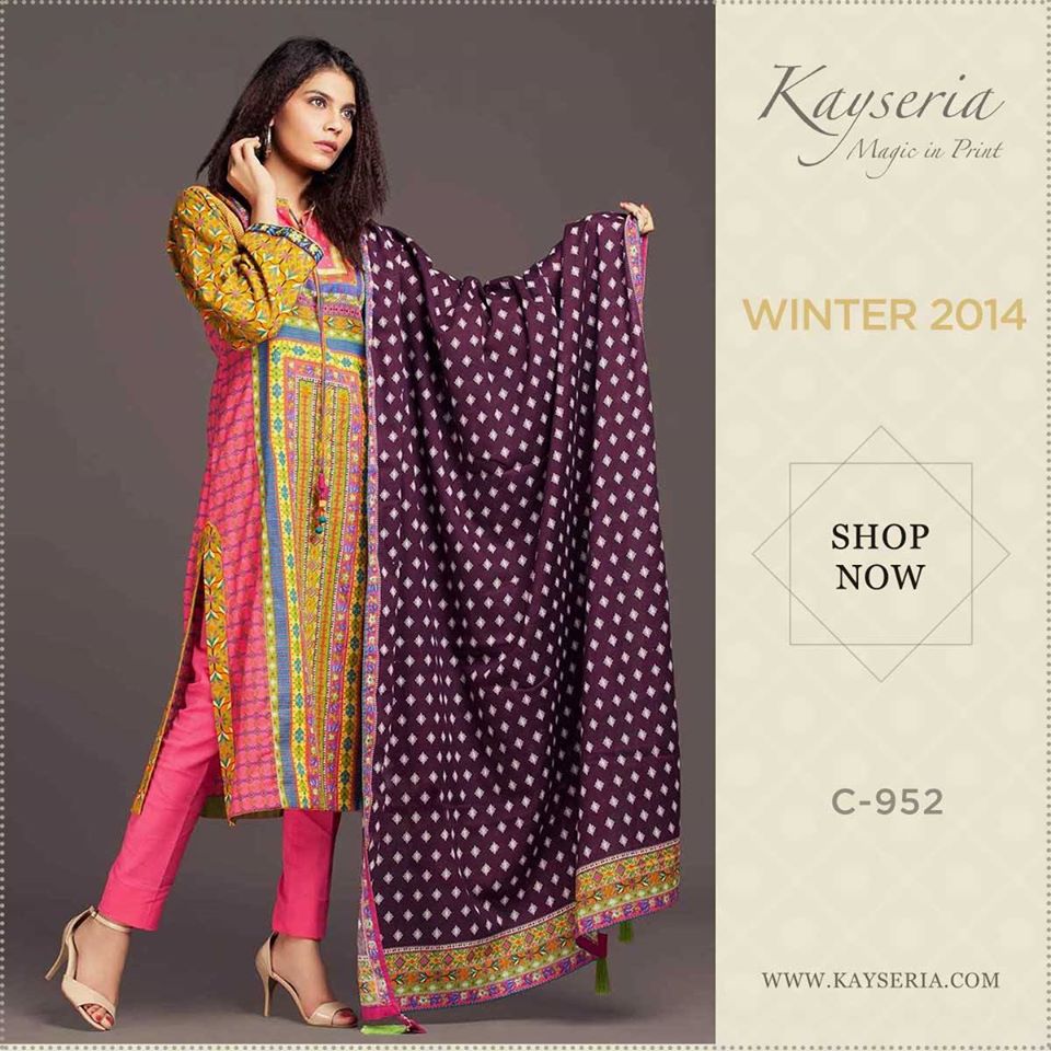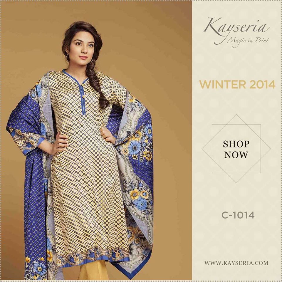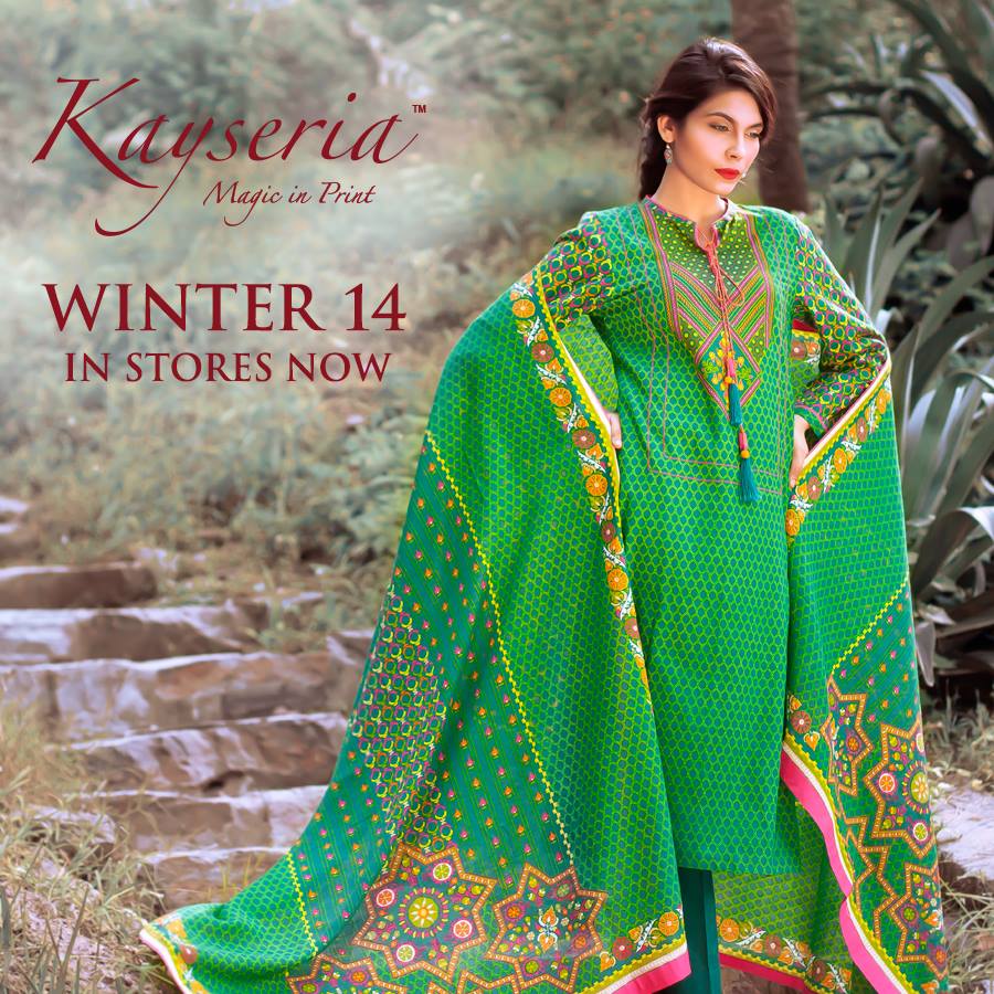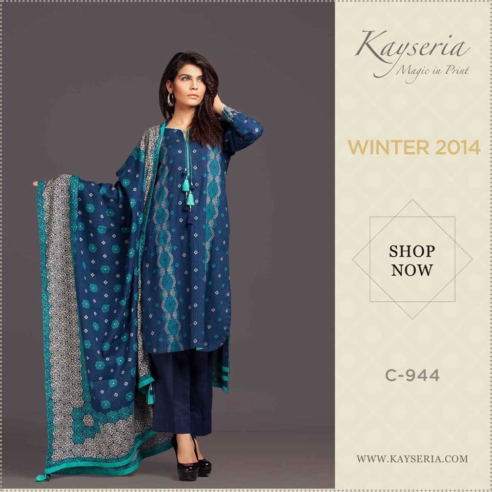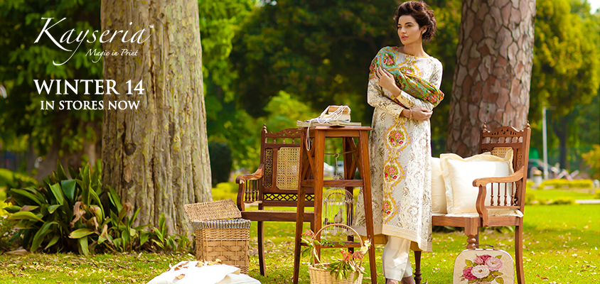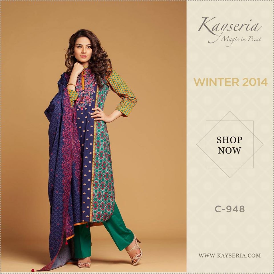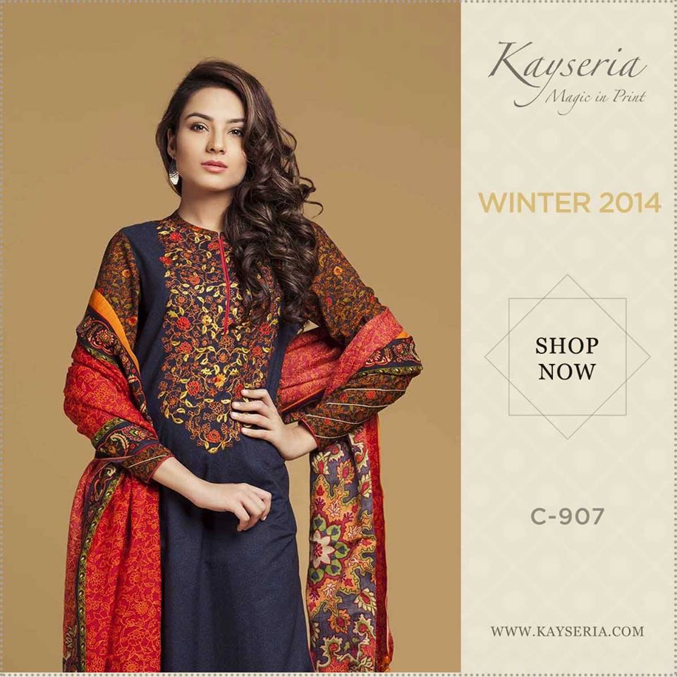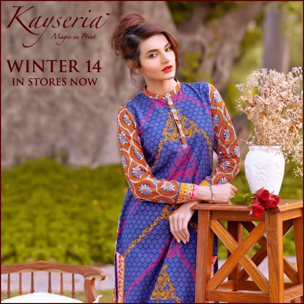 So, ladies! Are you done with your winter shopping? Still couldn’t find a dress of your dreams that simply blows one’s mind and makes you stand out of the world after wearing it? You may be lost into the world of fantasy for a moment but believe me your wish can come true. It might be just a photo way. Yes, a photo away, a photo that depicts true colors and styles of the upcoming season and the year. This piece of writing being followed by a photo session will help you fulfil your dream by letting you have a look at new classy and trendy winter wear suits that are no doubt holding a true glamourous and magical touch. So they are perfectly accurate to make your wish come true. This alluring collection has been brought to you by Kayseria. Kayseria is among very famous and renowned Pakistani clothing brands that have revolutionized the world of fashion and style by their outclass designs and styles.