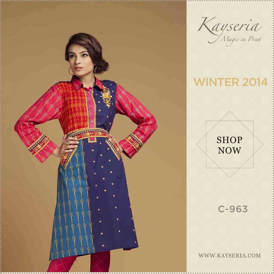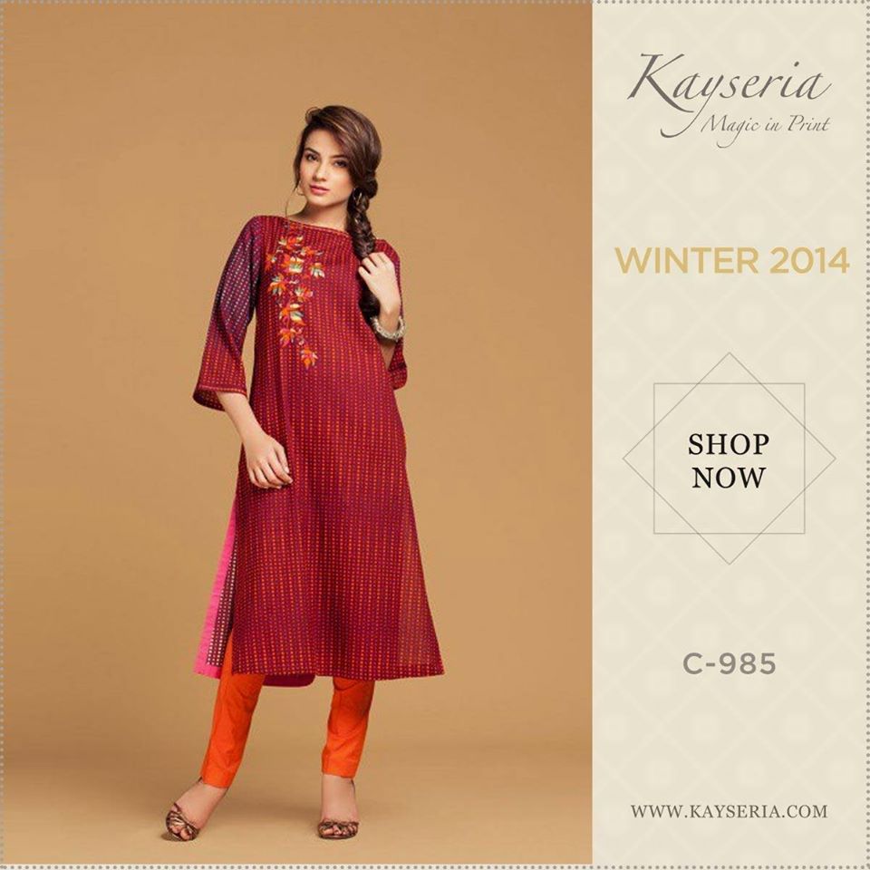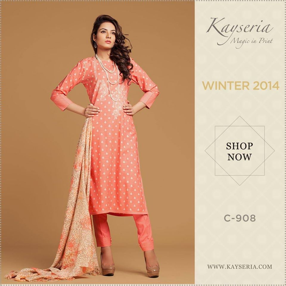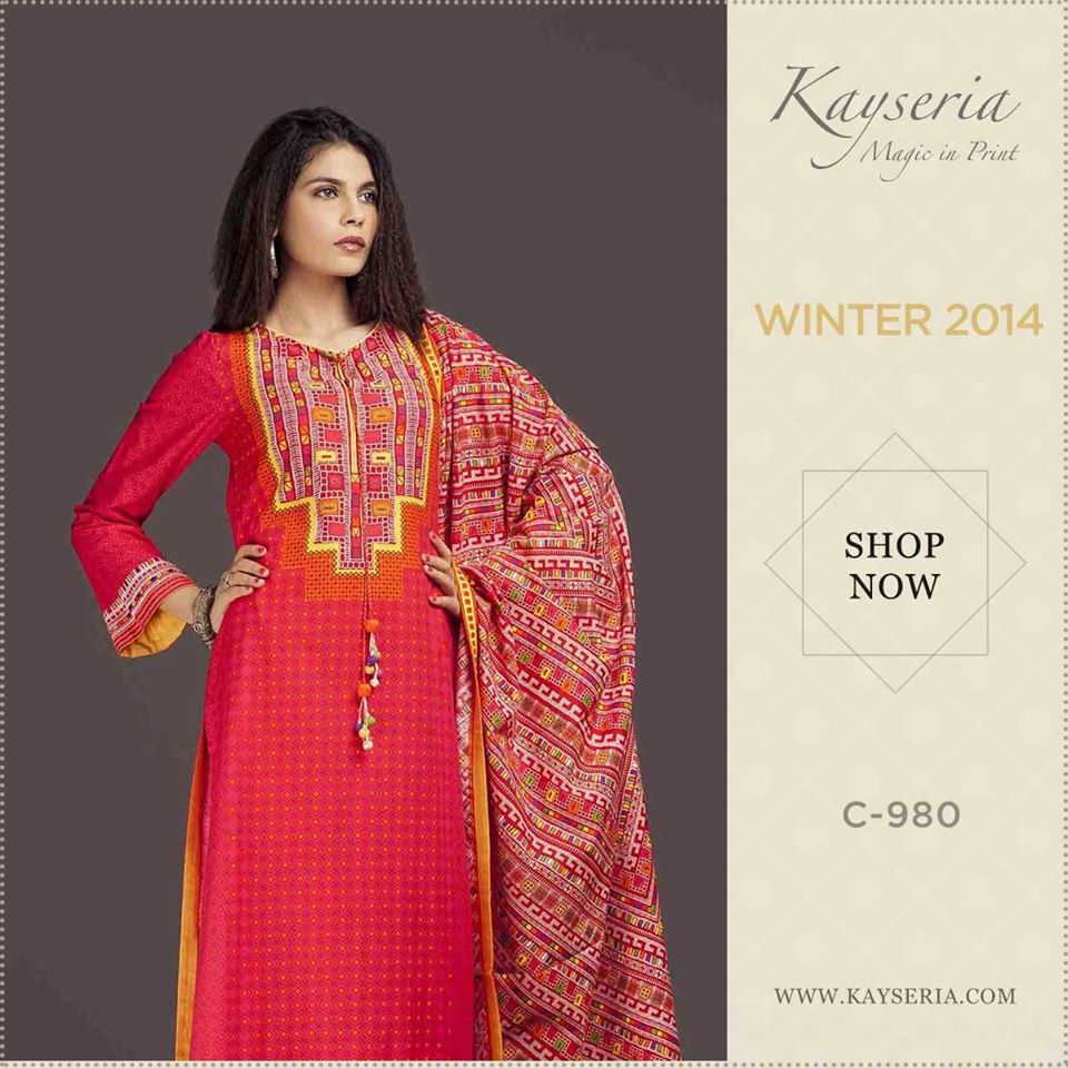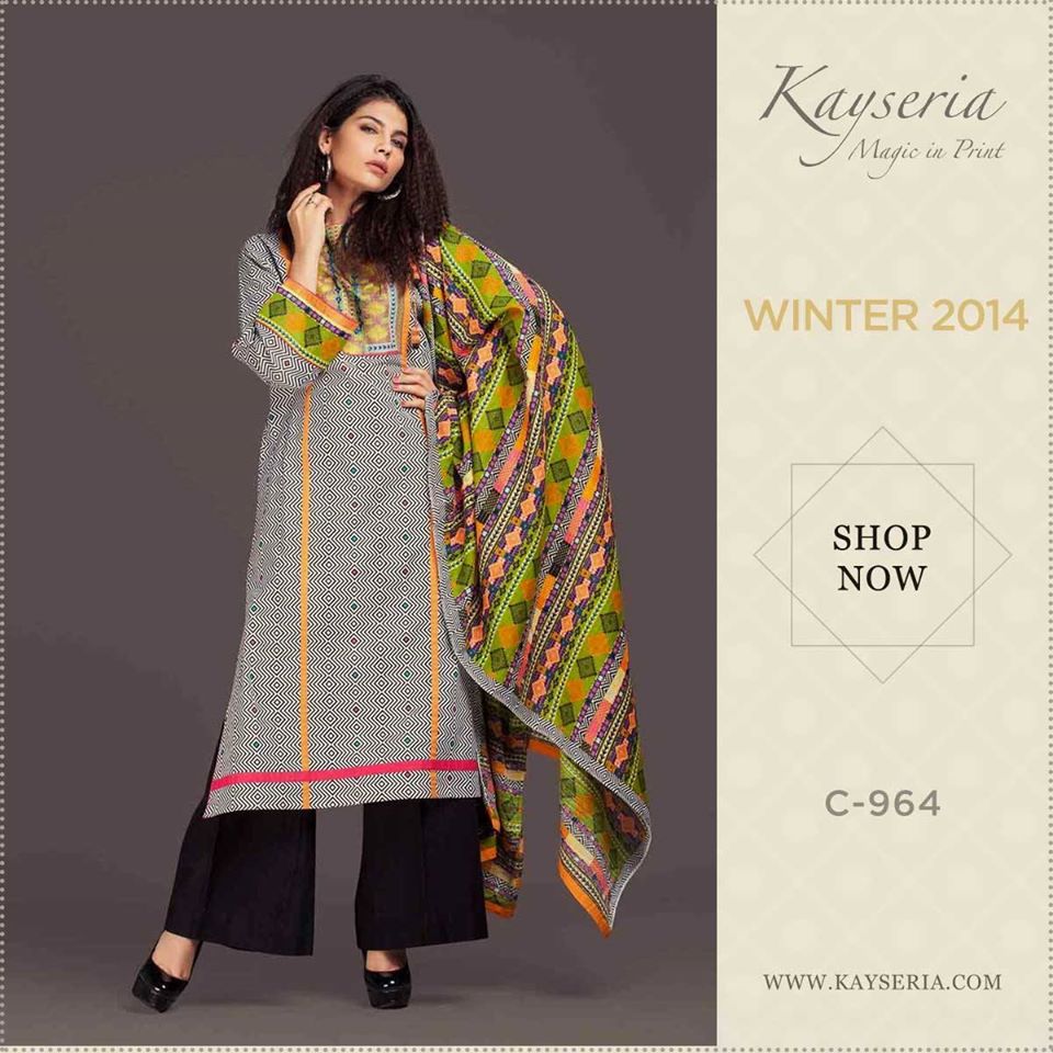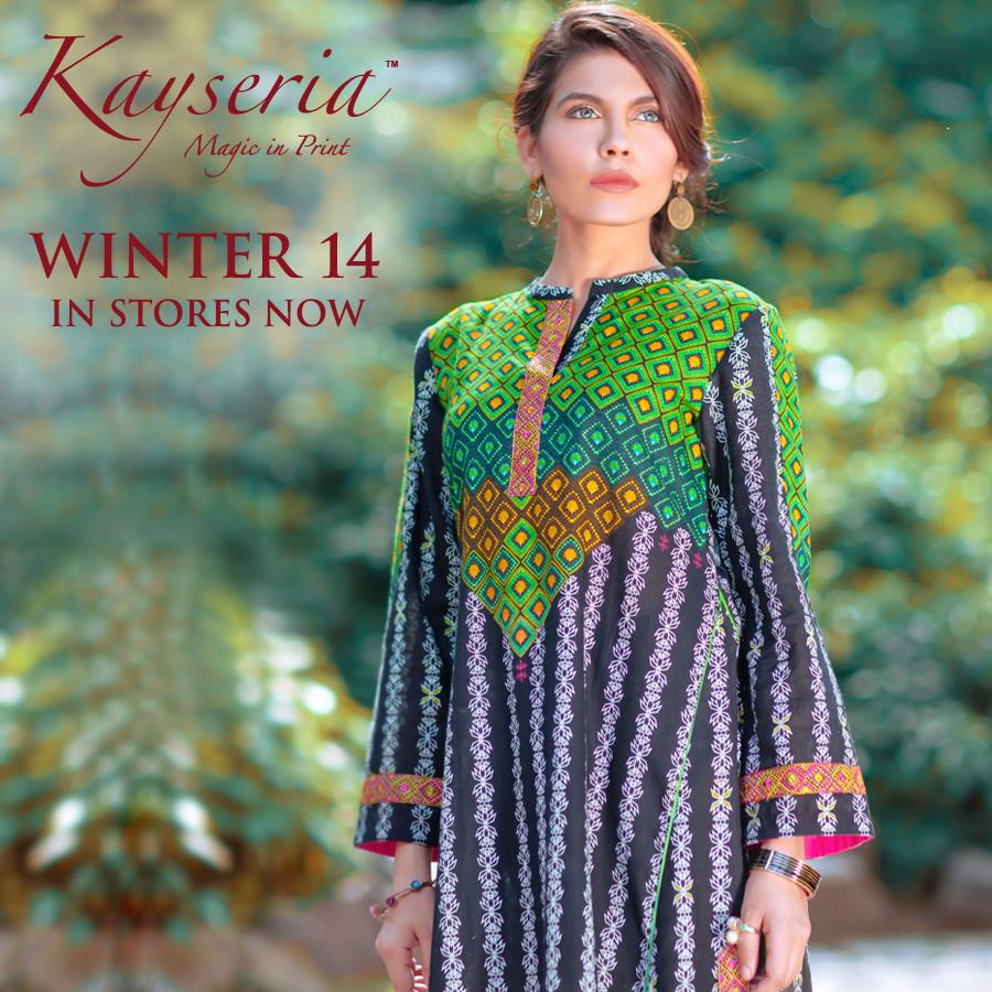 So, ladies! Are you done with your winter shopping? Still couldn’t find a dress of your dreams that simply blows one’s mind and makes you stand out of the world after wearing it? You may be lost into the world of fantasy for a moment but believe me your wish can come true. It might be just a photo way. Yes, a photo away, a photo that depicts true colors and styles of the upcoming season and the year. This piece of writing being followed by a photo session will help you fulfil your dream by letting you have a look at new classy and trendy winter wear suits that are no doubt holding a true glamourous and magical touch. So they are perfectly accurate to make your wish come true. This alluring collection has been brought to you by Kayseria. Kayseria is among very famous and renowned Pakistani clothing brands that have revolutionized the world of fashion and style by their outclass designs and styles.