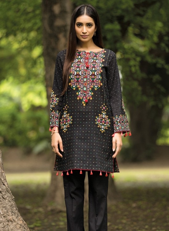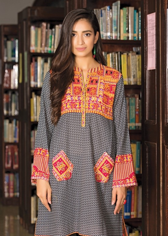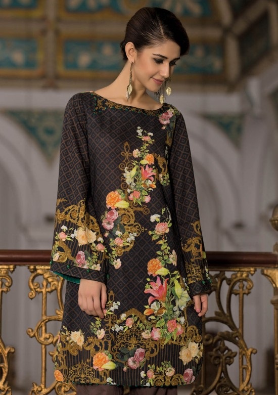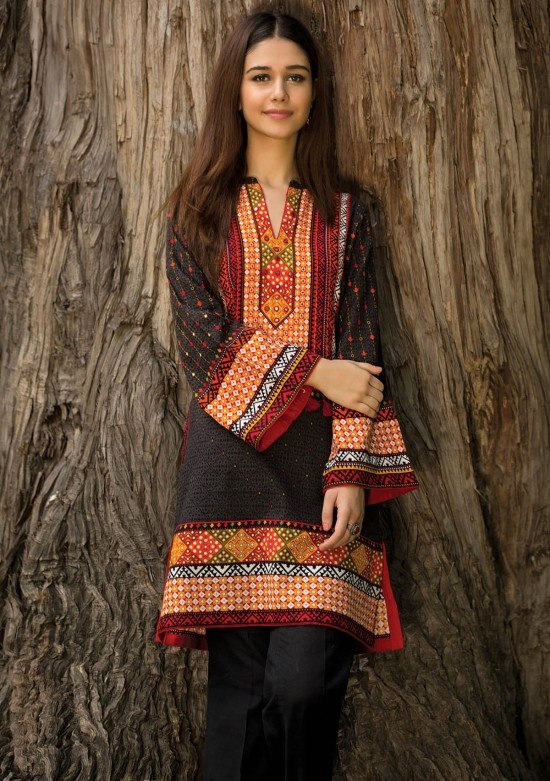 The classical black winter design by Kayseria with Multi Colored Print is an all in one attire for style conscious lasses.
