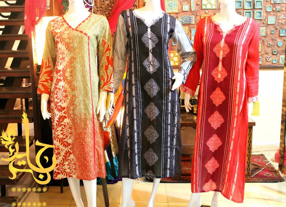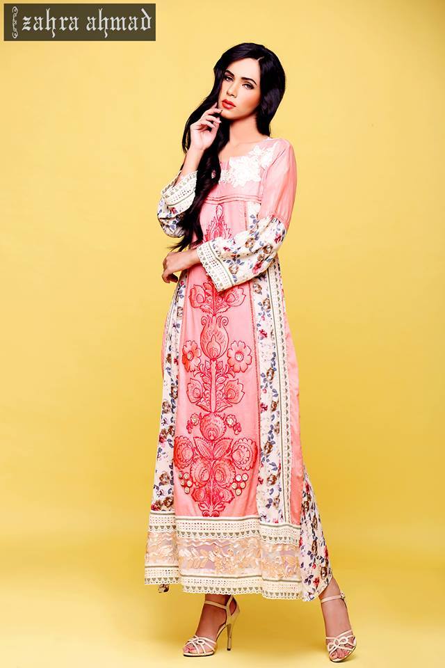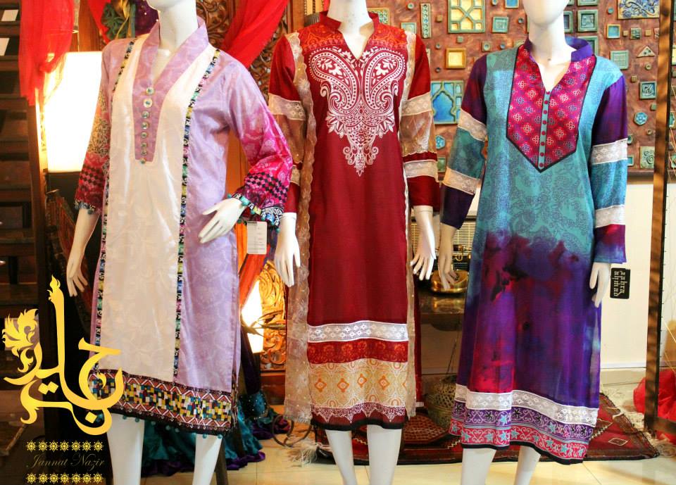 Zahra Ahmad’s artwear of luxury clothing “Jannat Nazir” is coming up your way with spectacular Eid collection enveloping most stylish and adorable prints of the season. Among the collections that we have just presented here so far, this is the only assortment that has introduced an amalgam of casual and formal wear by presenting lawn as well as fancy chiffon and silk variety. Jannat Nazir is a clothing hub started by Zahra Ahmad in 2012, which itself is among Pakistan’s most famous and well reputed clothing brands. By designing outclass and trendy ready to wear garments for women the brand has earned a lot of fame since last few years and now has become the choice of modern woman. When you talk about fancy dresses for occasions and parties, one thing that must be bothered is comfortably. A fancy dress should be comfortable and easy to wear as it is usually supposed to be worn for hours like on festivals, parties and wedding ceremonies etc. This brand has always been designing fancy dresses with comfortable stuff that is easy to wear. So, if you want to buy a dress on the festival that is not only fancy and heavy but also comfortable to wear then you must check out Jannat Nazir’s fresh arrivals which will help you out in picking up the best dress on this festival.