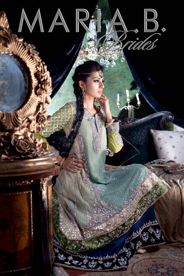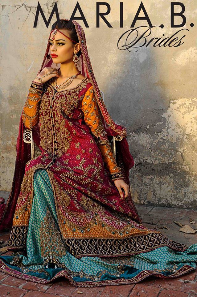One of the most famous fashion labels of Pakistan “Maria B” has launched their 2014 collections. The most awaited collection among them was the Bridal wear Collection2014. So we have decided to share this wonderful collection with you. Maria B is a very talented lady recognizing herself as one of the top most fashion designers of Pakistan. She has a good experience in the field of women’s clothing and is designing wonderful dresses since 1999. The fashion hub running under her name “Maria B” comes up with unique collections every year containing dresses in a wide variety of styles including casual wears, formal and semi formal wears, party wears/evening wears, stitched and unstitched lawn dresses, and bridal wears.