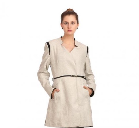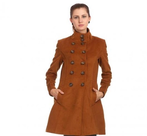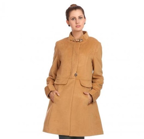 If you care to change your taste for the season, this coat would be perfect. Its mild yellow with medium length and stand collar.