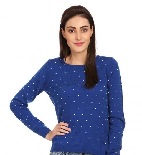 Pretty blue dotted sweatshirt is a new treat for the season. It’s comfy with the slim fit, great to wear with jeans.