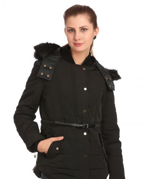 This hood jacket is quite unique in the ways it is designed because of the detachable fur hood, front waist belt and additional neck collar.