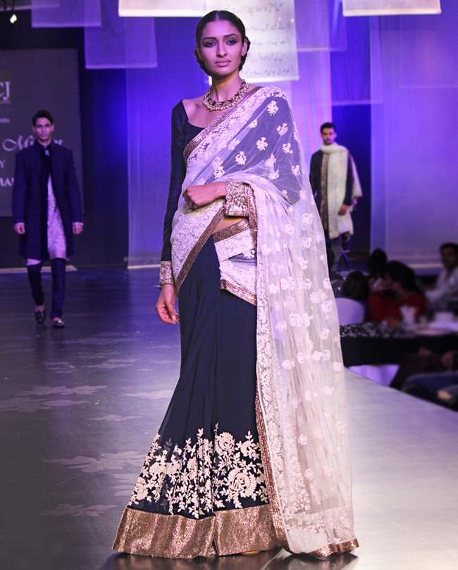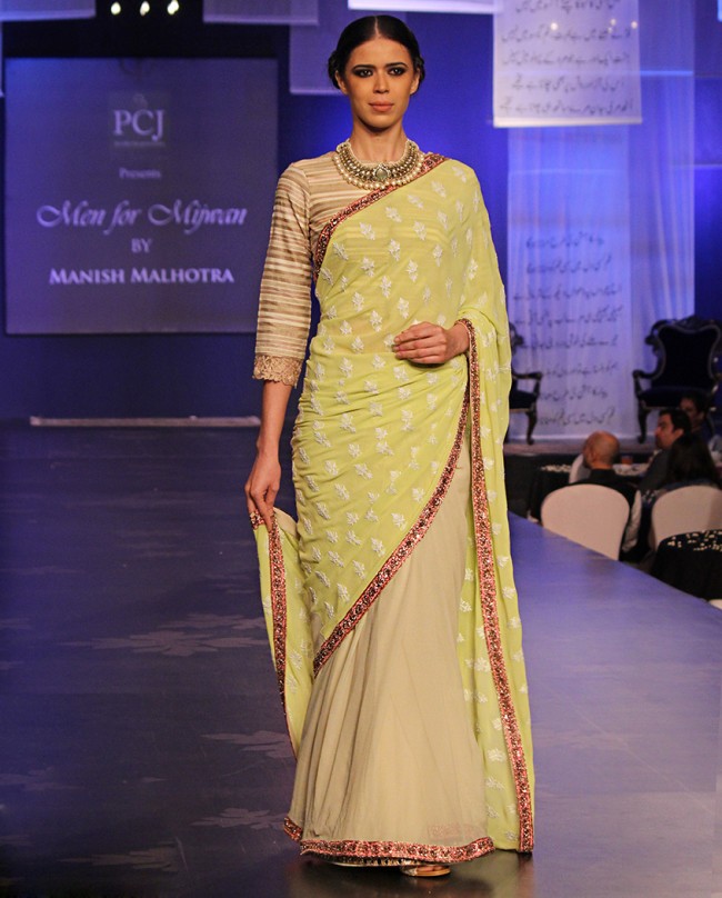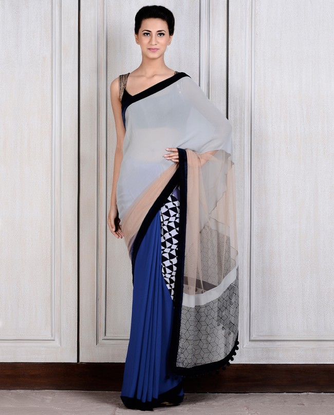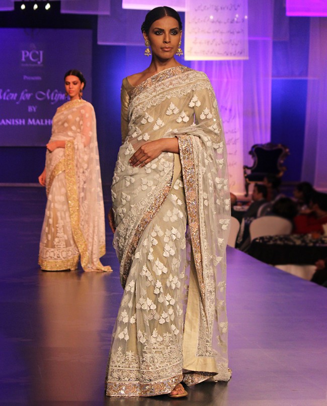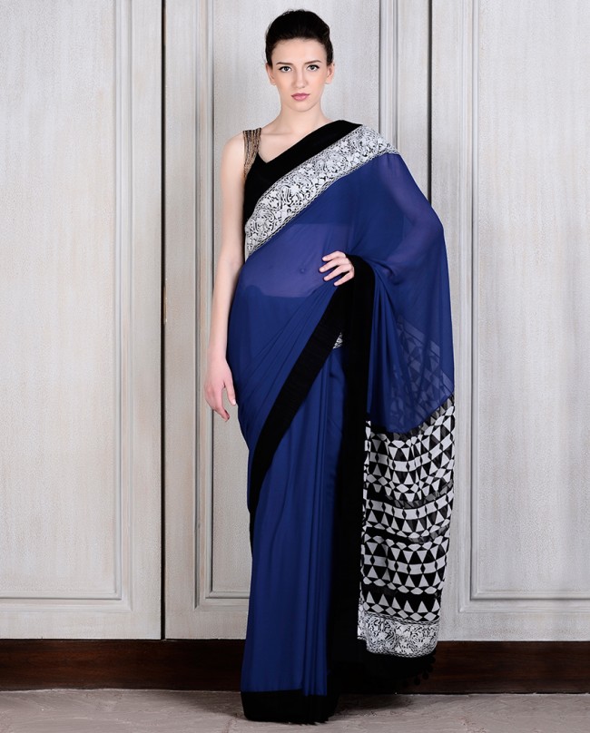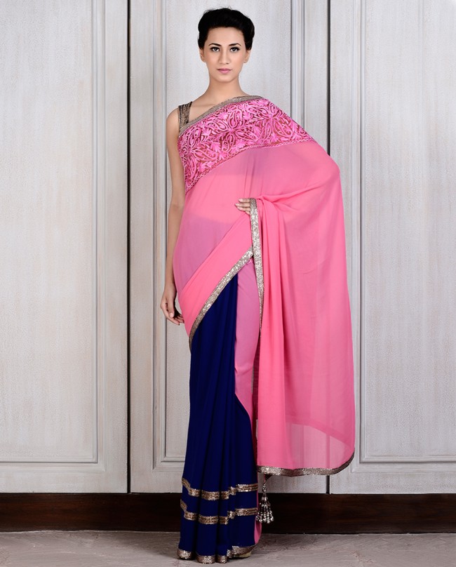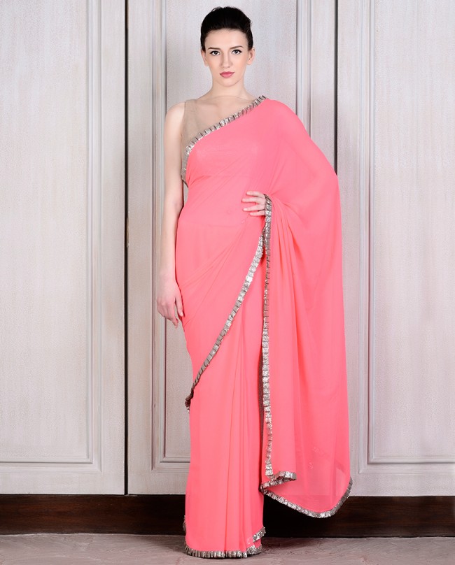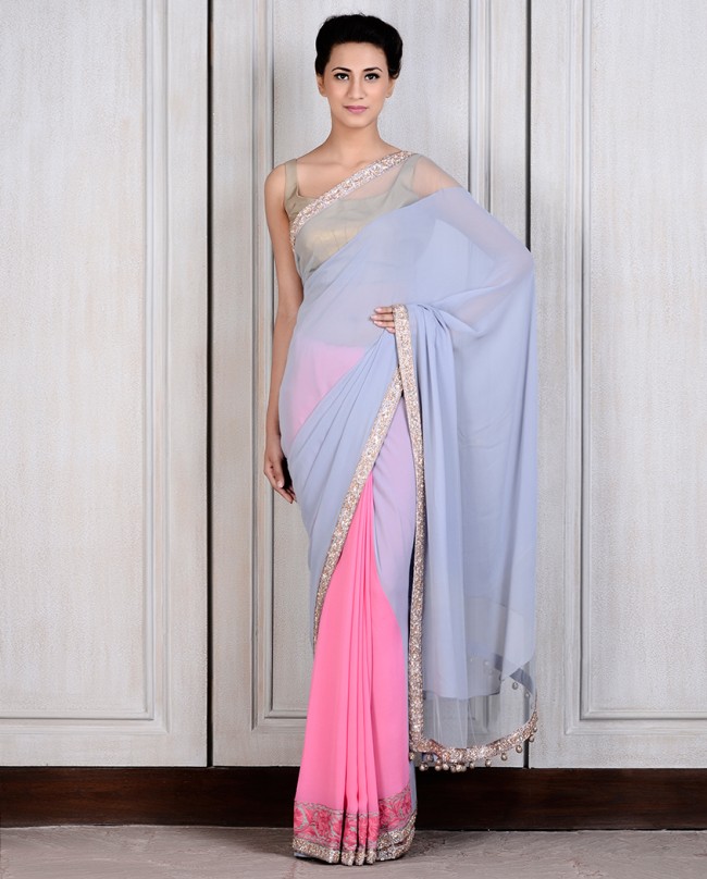 The new arrivals of Saree Collection 2014 by Manish Malhotra are really promising and demanding. This assortment is enriched with a wide range of saree designs in casual as well as formal styles. Some are loaded with embroidered and thread work, others are simple and elegant. Have a look at all the designs in this beautiful collection below. Be the first one to purchase these lovely Sarees by visiting the official website to shop online. Do not forget to share your views about these pretty designs.