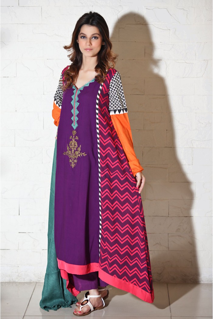 Maria B Winter-Fall 2014-2015 Collection for women and girls has been finally out, spreading it’s charm and charisma all around and grabbing customer attention. Almost all the items introduced in this wonderful collection are the ‘must have’ dresses that can enhance the beauty and glamour of your fall wardrobe dramatically. The assortment covers up a classy casual wear cotton range of fabrics with elegant and graceful designs and prints of three piece cotton suits along with trendy evening wears or party wears in the formal-wear category. Both the casual and formal classics in stitched and unstitched formats are pretty and attractive in their own way with best ever and promising designs and styles. We have posted a photo gallery below where all these outfits have been displayed so you may find it easy to select your favourite dresses and buy them online if you wish to. Have a look and pick up an adorable winter dress for you. Keep visiting Stylesglamour winter fashion gallery for more collections and fashion updates.