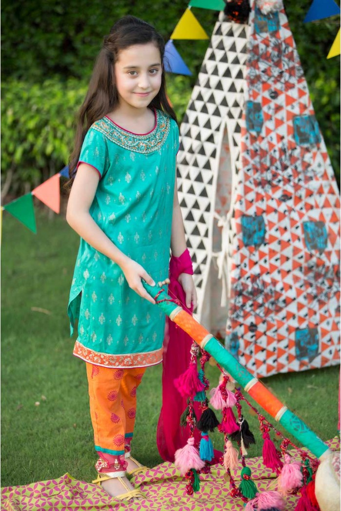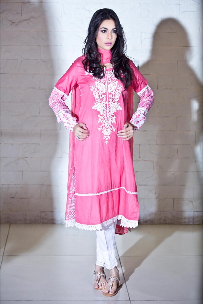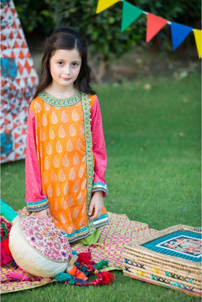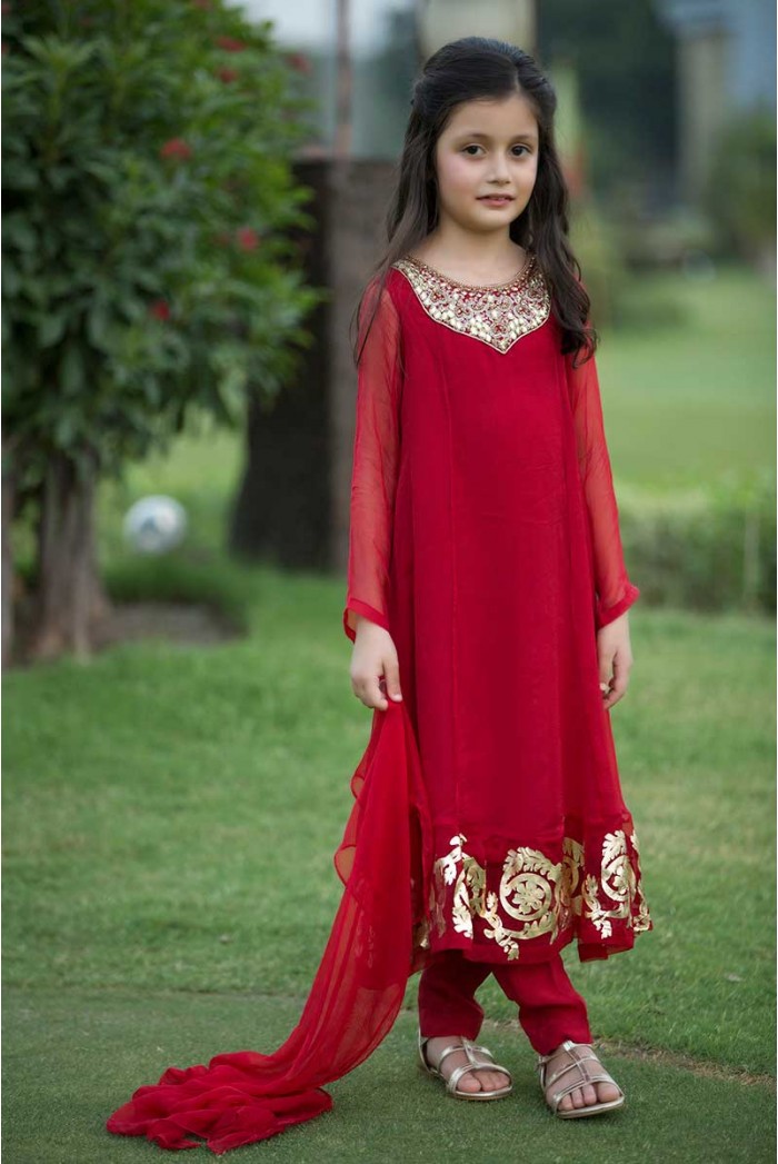 Maria B Eid Collection 2015-2016 for women and little girls has been launched as the best festival collection of the season with very appealing and beautiful festive prints in lawn and chiffon stuff. Very elegant, shiny and glossy embroideries with gota work and thread work have made these fancy outfits suitable and most appropriate to be worn on the mega event of Eid. So be very confident about the fascination of this collection and select it as your choice this year.