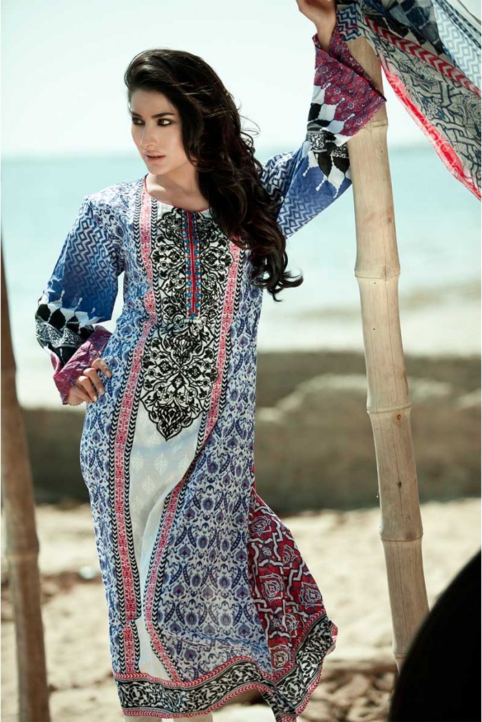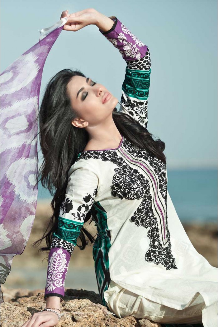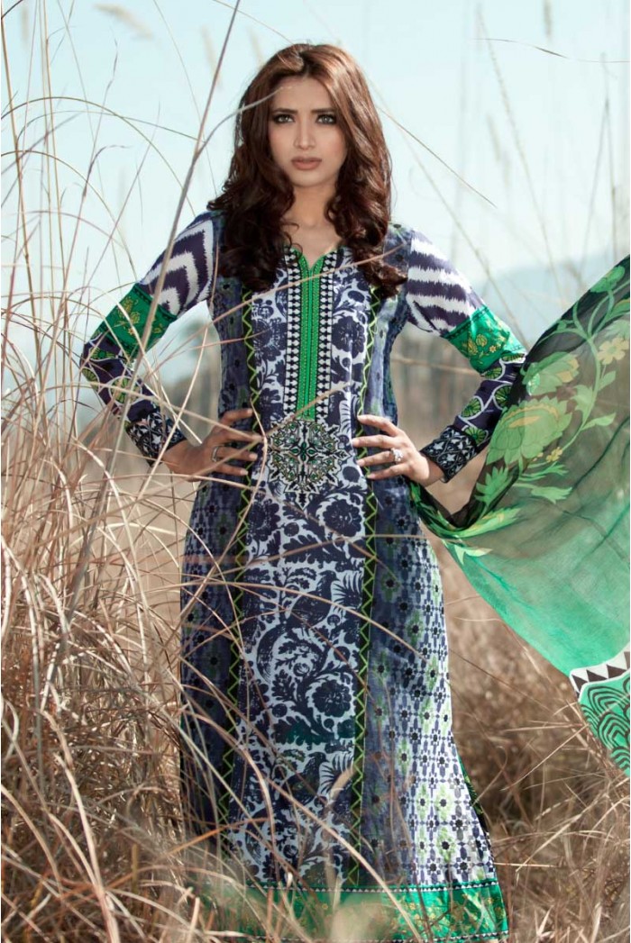 The Summer has just arrived with all it’s charm and colors. And it’s time to fill up your wardrobe with some new dresses. But to select a perfect one among so many items is not a simple deal for most of us. Even if you are not that conscious about your dresses, you will start bothering when you will observe your mates busy in searching new designs and arrivals for the season. Fashion and style is no doubt an art of life that fills the spectrum of our lives with colors. We are indulged into it either directly or indirectly. We have a good news for all of you, specially for the young girls and ladies who have just spent the whole winters planning their new dresses to look all the more stylish and different. Finally the wait is over and the new designs are unveiled by most of the designers. We have brought tp you the latest arrivals of stitched lawn dresses from Maria.B Summer Lawn Latest collection.