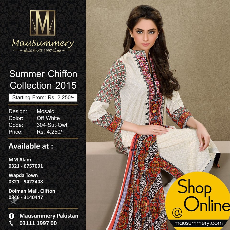 Mausummery Summer 2015-2016 catalog is attached here with all the designs and Mausummery New Arrivals being displayed clearly and closely along with their price details and codes. The best thing about this collection is that it offers dresses in a reasonable range with starting price from 1,195 rs/. only. You can purchase these beautiful lawn suits from the Mausummery estore or Mausummery official outlets. Keep visiting Stylesglamour Summer Fashion wardrobe for more assortments.