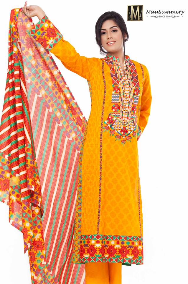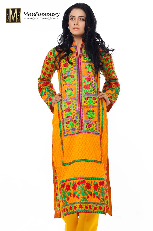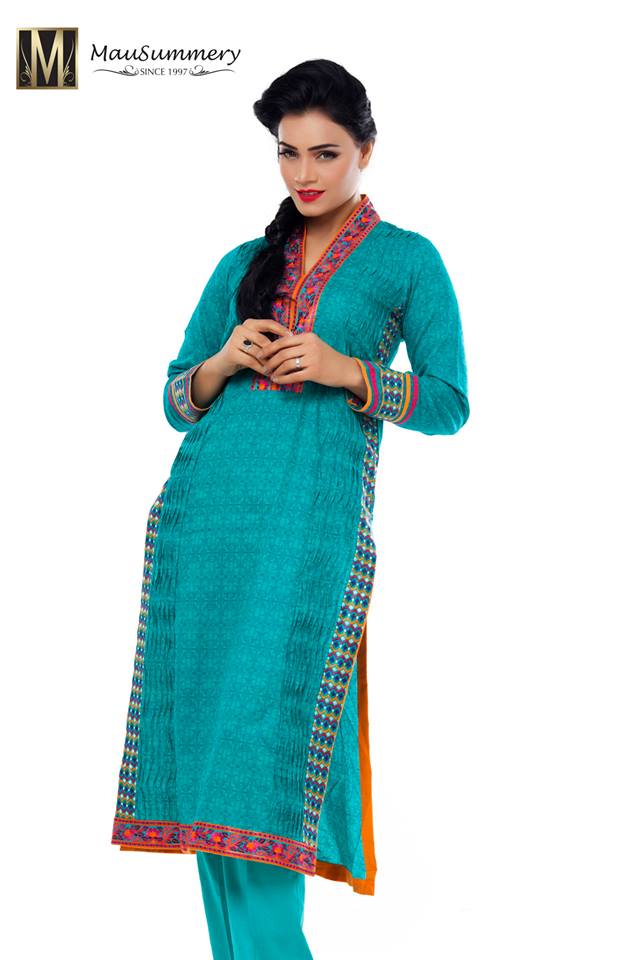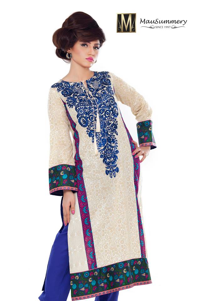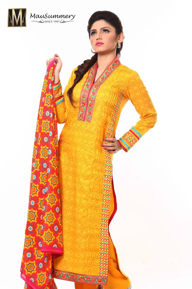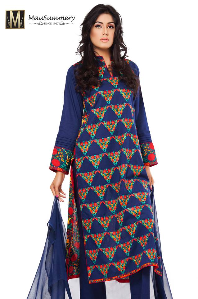 The Summer 2014 collection of Mausummery contains a wide variety of designs and prints with colorful patterns and cool colors. The stuff used is just according to the season and feels extremely comfortable to wear. Mausummery is unique in using patchy work for sleeves and necklines with a little embroidered work. These are available as full suits as well as two piece suits. Following is a photo gallery covering :all the designs and prints offered in this wonderful collection for the year 2014. Enjoy the photo shoot and chose a perfect dress for you. In order to buy any of the items visit its’ nearest outlet in your city today. We will be adding other lawn prints soon. Stay tuned with stylesglamour for more collections by top most clothing brands.