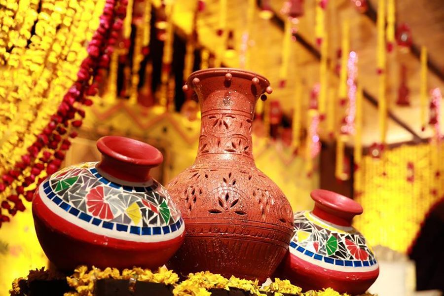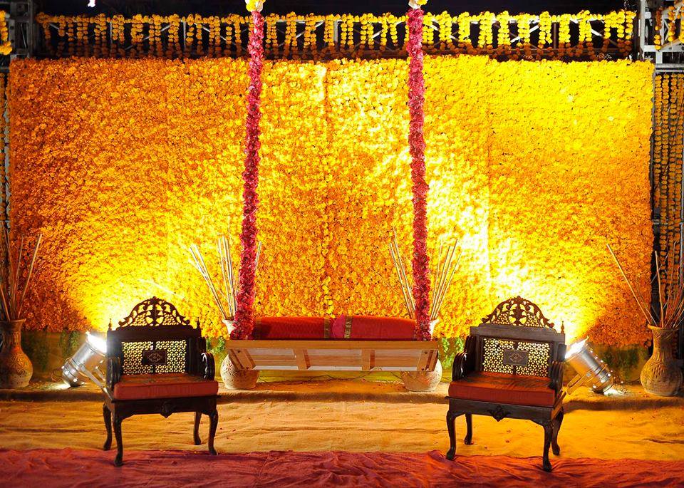 The wedding trends keep on switching so does the Mehndi trends. The current trends that are being followed include large circular or rectangular plates, generally large enough to be held by 4 to 5 girls. These plates range in number from 2 to 6 depending upon the number of girls holding. Two little girls standing in the front line can hold decorated clay bowls while others holding smaller plates, generally small enough to cover the hand palm. As far as the decoration of stage is concerned, it has always been in trends to use yellow coloured flowers that just make it more natural and appropriate for the ceremony.