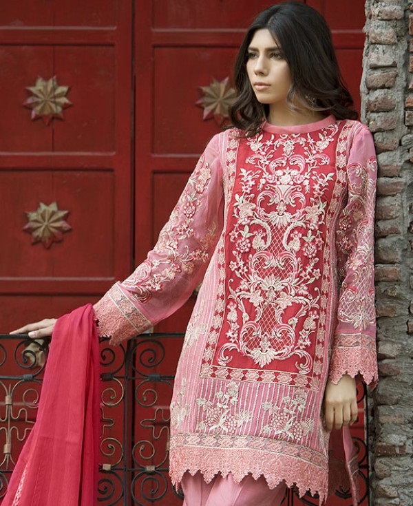What else could be perfect than a pink outfit for girls? Motifz Embroidered Eid Classics have this beautiful shade of pink for you to make this Eid wonderful with your outclass looks and adorable attire. The spanish pink colored shirt in light and dark shades is decorated with embroidery all over the front and sleeves along with a contrasting embroidered dupatta in pure chiffon stuff.