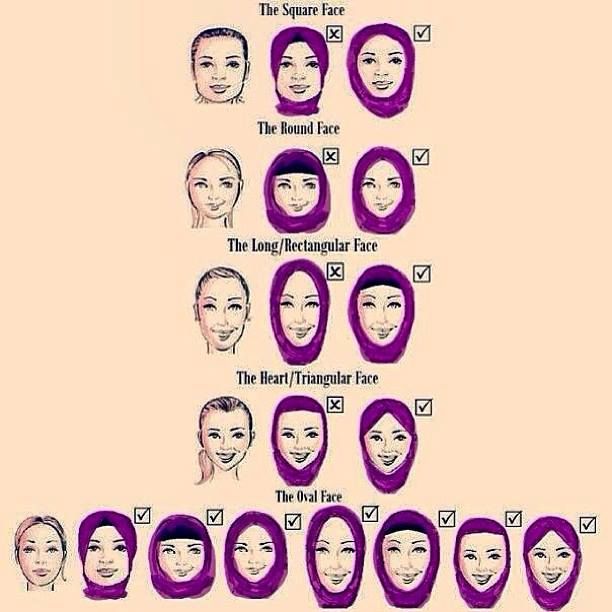 - Considering your face shape is the most important thing to decide the style of draping that won’t your chubby face look chubbier or thin face look more mummified. For example, for a square shaped face you better skim the edges of your mouth with cloth to make the rounded look; for round one wrap the scarf in a way it looks long; similarly if you have long shaped one with wide forehead make your hijab cap hide more part of the forehead.