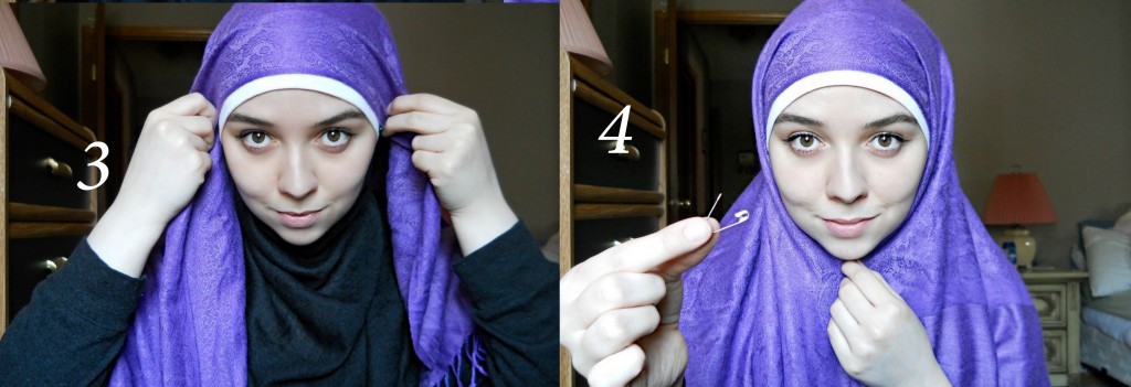 - Now folding the cloth a bit over your ear part, grab the both side of shawl around your jawline down to your chin and there, pin them up!