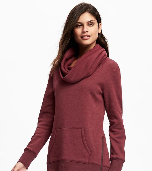 Cowl neck sweaters are definitely loved by all. Old navy has just made it more mesmerizing than ever before. These have smart looking front pockets which make it a must-have for all the girls out there. The loose fit keeps it comfy and easy to carry. Side zips are the most prominent feature of this sweater.