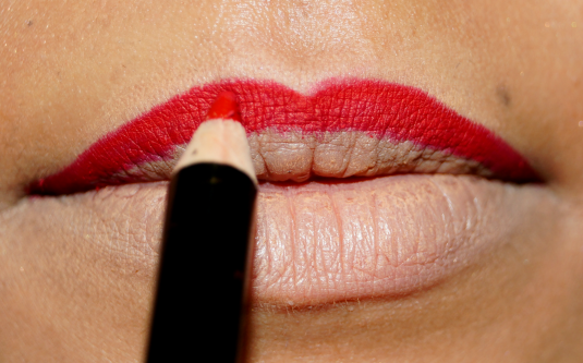 • Done with base, time to mingle up the tints! Start from the cupid bow using the darker one and draw a thick boundary in the way pictured below.